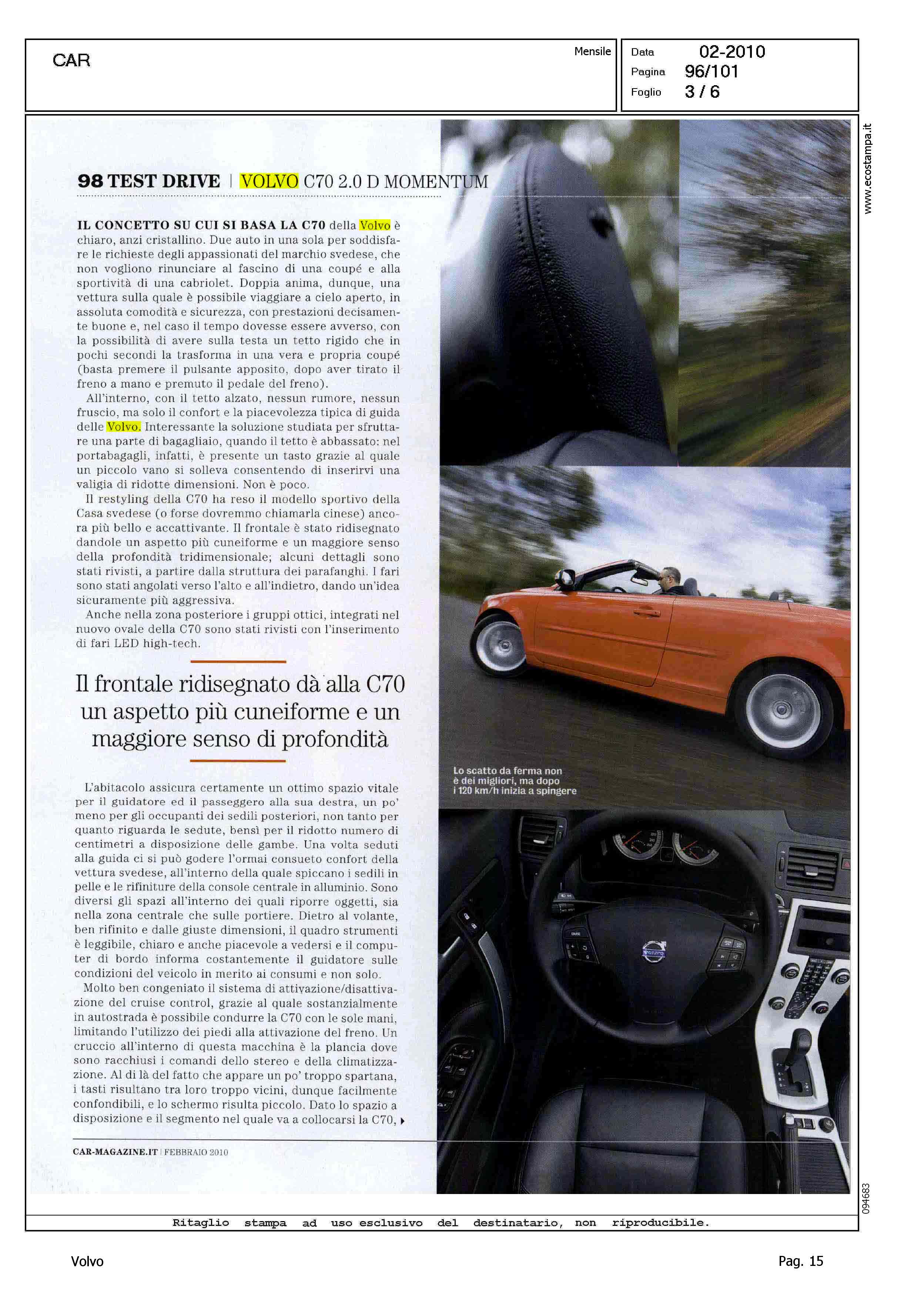 Line: Corporate Model: Volvo C70 Convertible Subject: -
