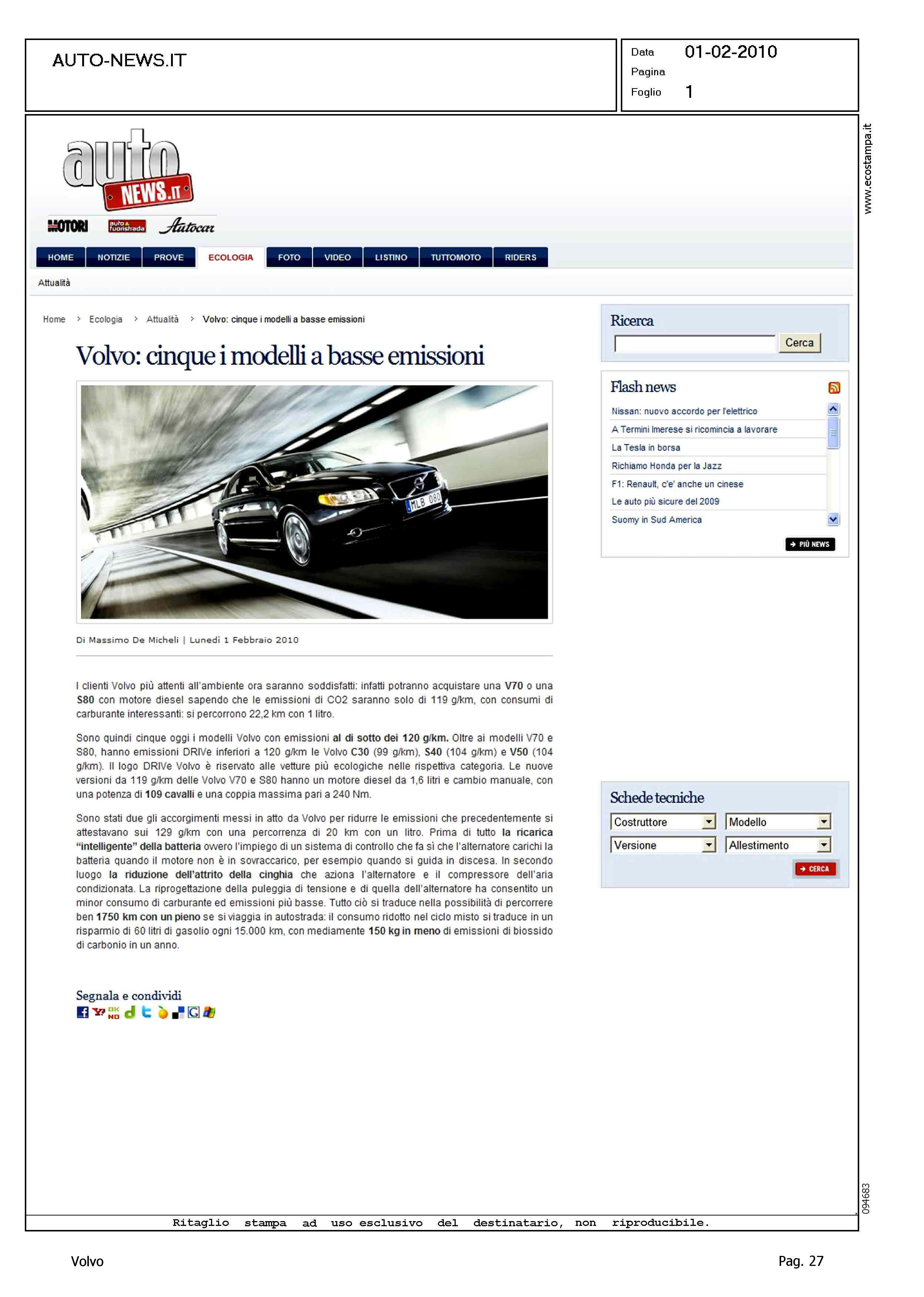 Author: Line: Corporate Model: Corporate Subject: Line (Range) Drive Title: VOLVO: CINQUE MODELLI A BASSE EMISSIONIHighlight: CARATTERISTICHE TECNICHE - MODELLI DI DESTINAZIONE