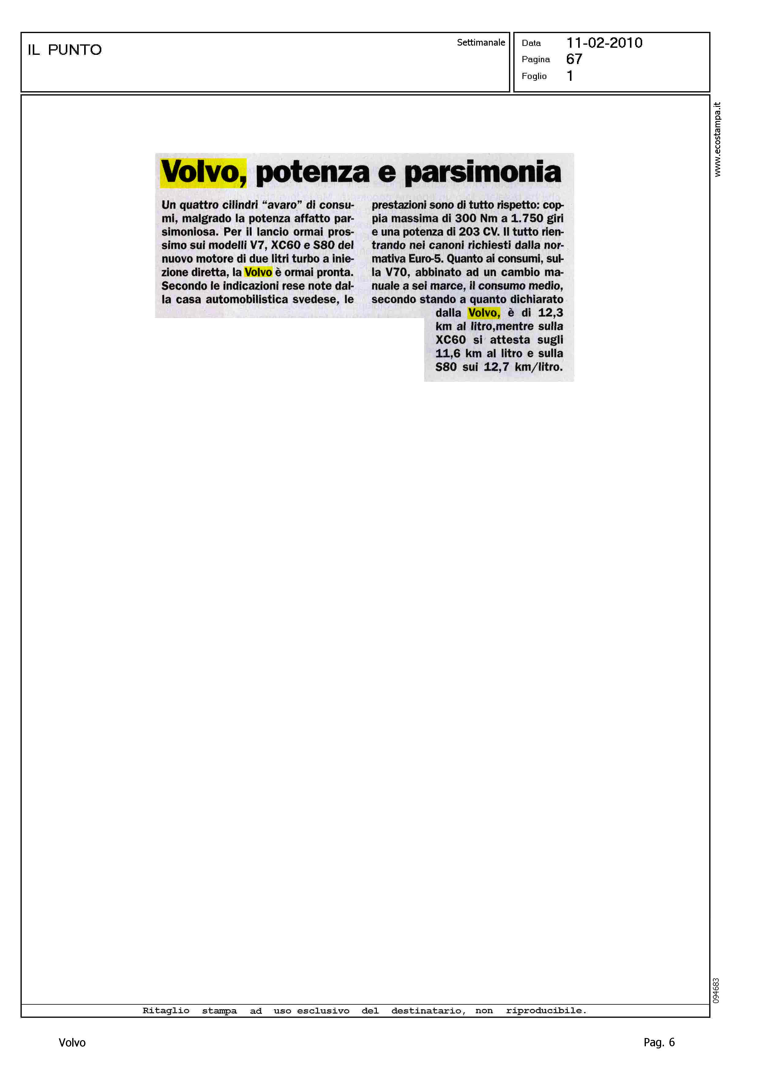 Author: Line: Corporate Model: Corporate Subject: Line (Range) Drive Title: VOLVO, POTENZA E PARSIMONIAHighlight: CARATTERISTICHE TECNICHE