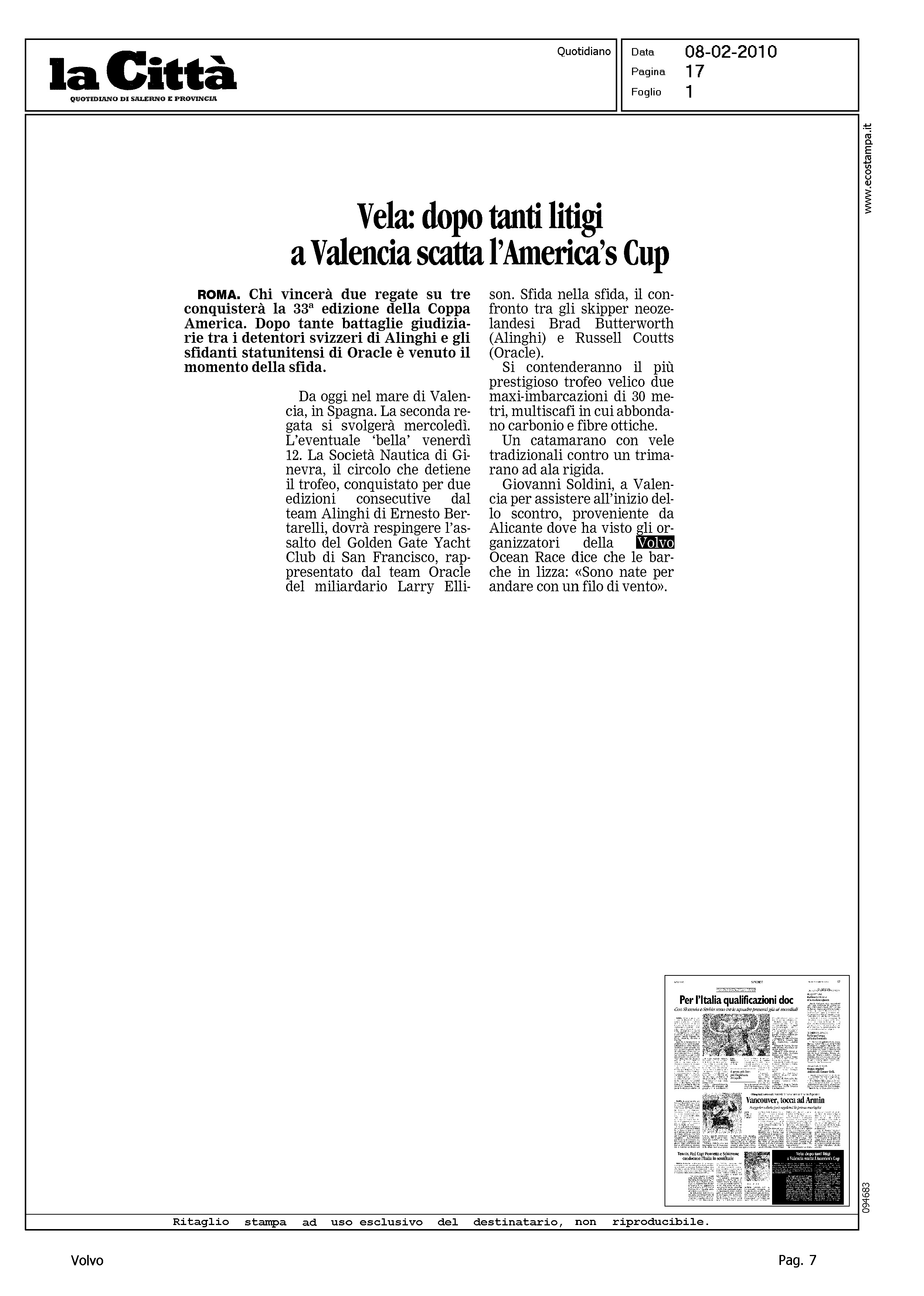 Author: Line: Corporate Model: Corporate Subject: Volvo Ocean Race Title: VELA: DOPO TANTI LITIGI...Highlight: 33AC - VALENCIA