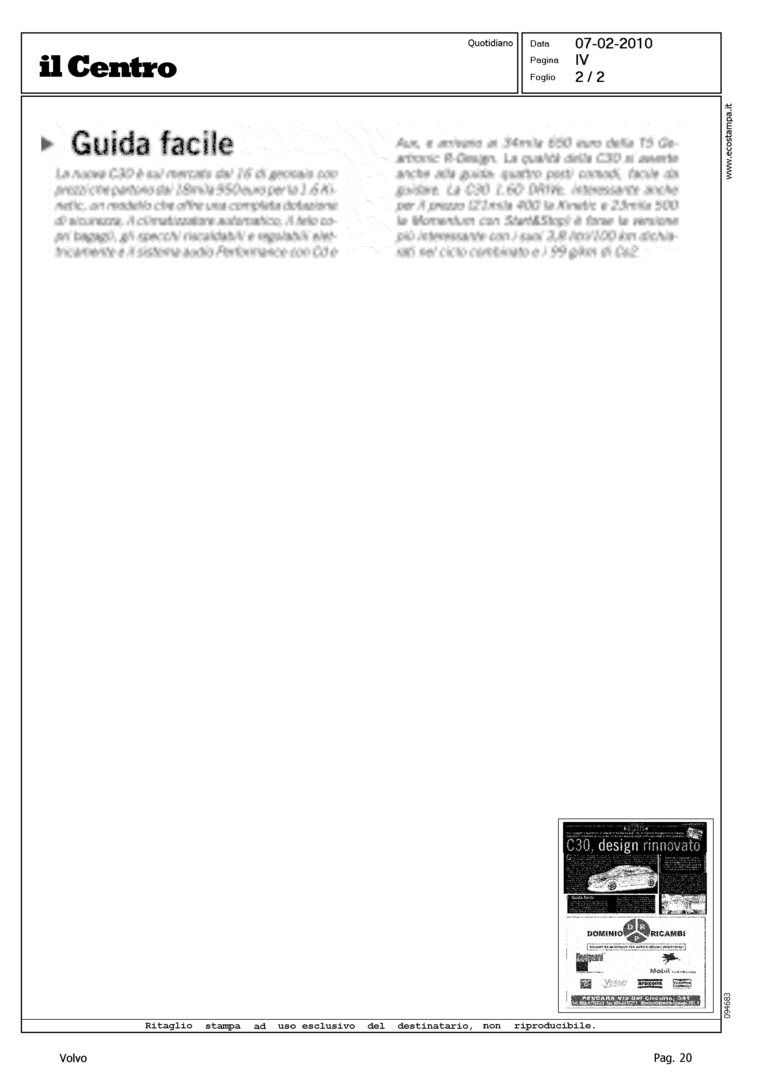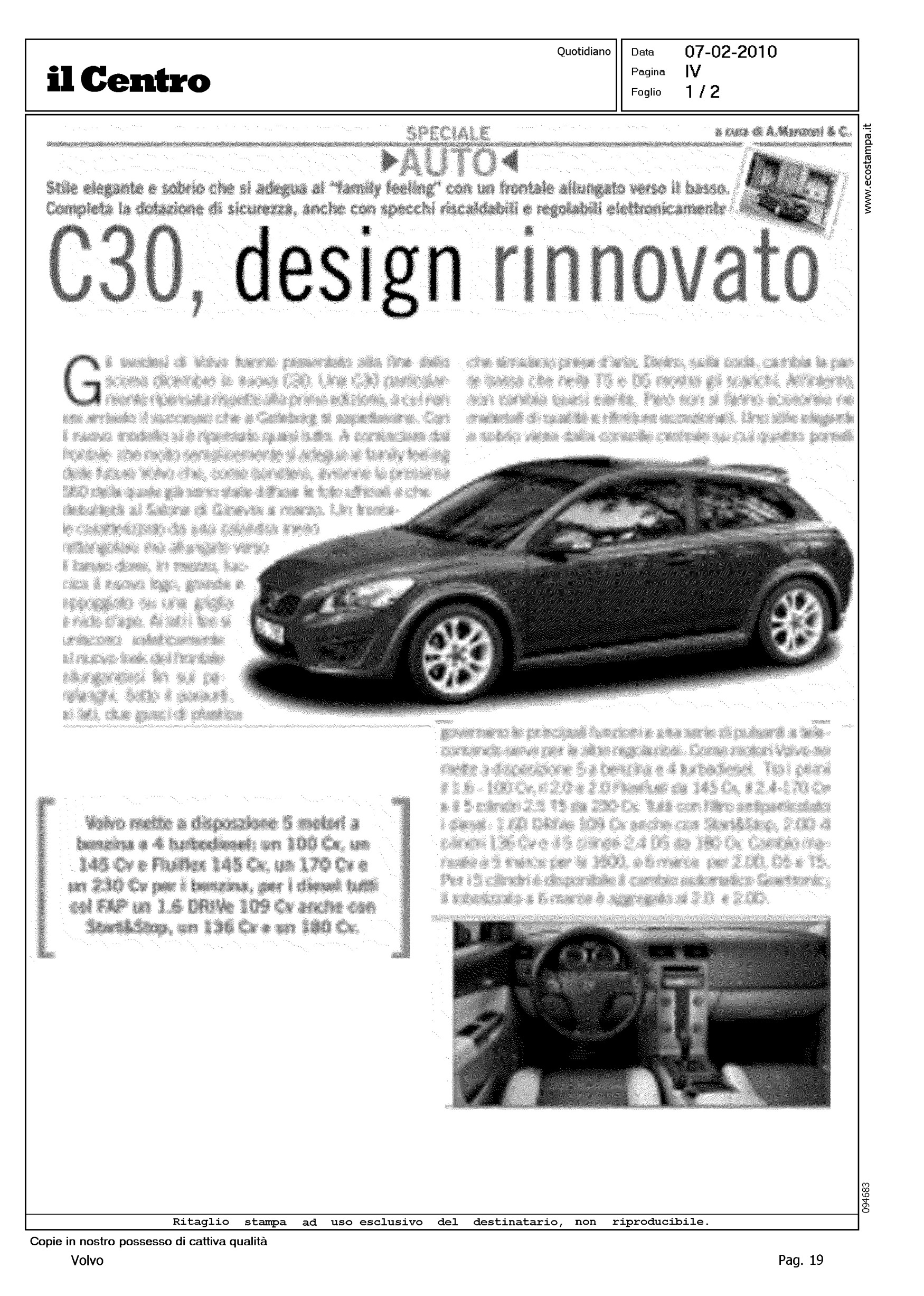 Author: Line: Corporate Model: Volvo C30 Subject: - Title: C30, DESIGN RINNOVATOHighlight: DESIGN - MOTORI - DINAMICA DI MARCIA (articolo difficilmente leggibile)
