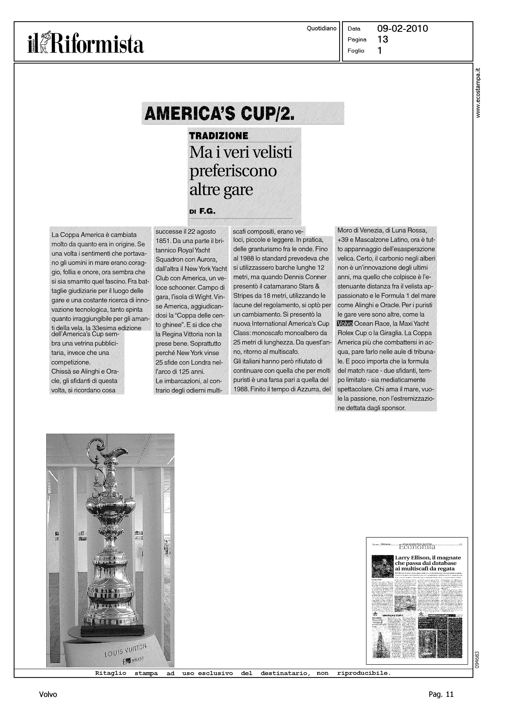 Author: Line: Corporate Model: Corporate Subject: Volvo Ocean Race Title: AMERICA'S CUP/2 - MA I VERI VELISTI PREFERISCONO ALTRE GAREHighlight: VOR REGATA PER ECCELLENZA