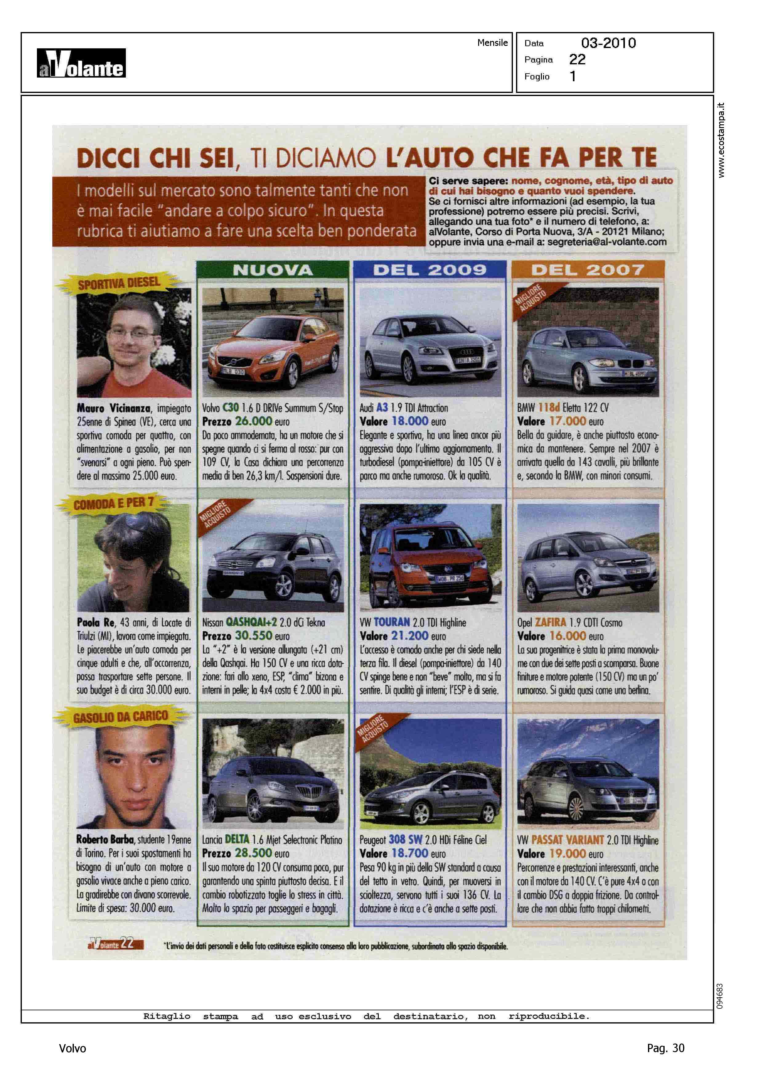 Author: Line: Corporate Model: Volvo C30 Subject: - Title: DICCI CHI SEI, TI DICIAMO L'AUTO CHE FA PER TEHighlight: MODELLO - PREZZO - MOTORE - START/STOP