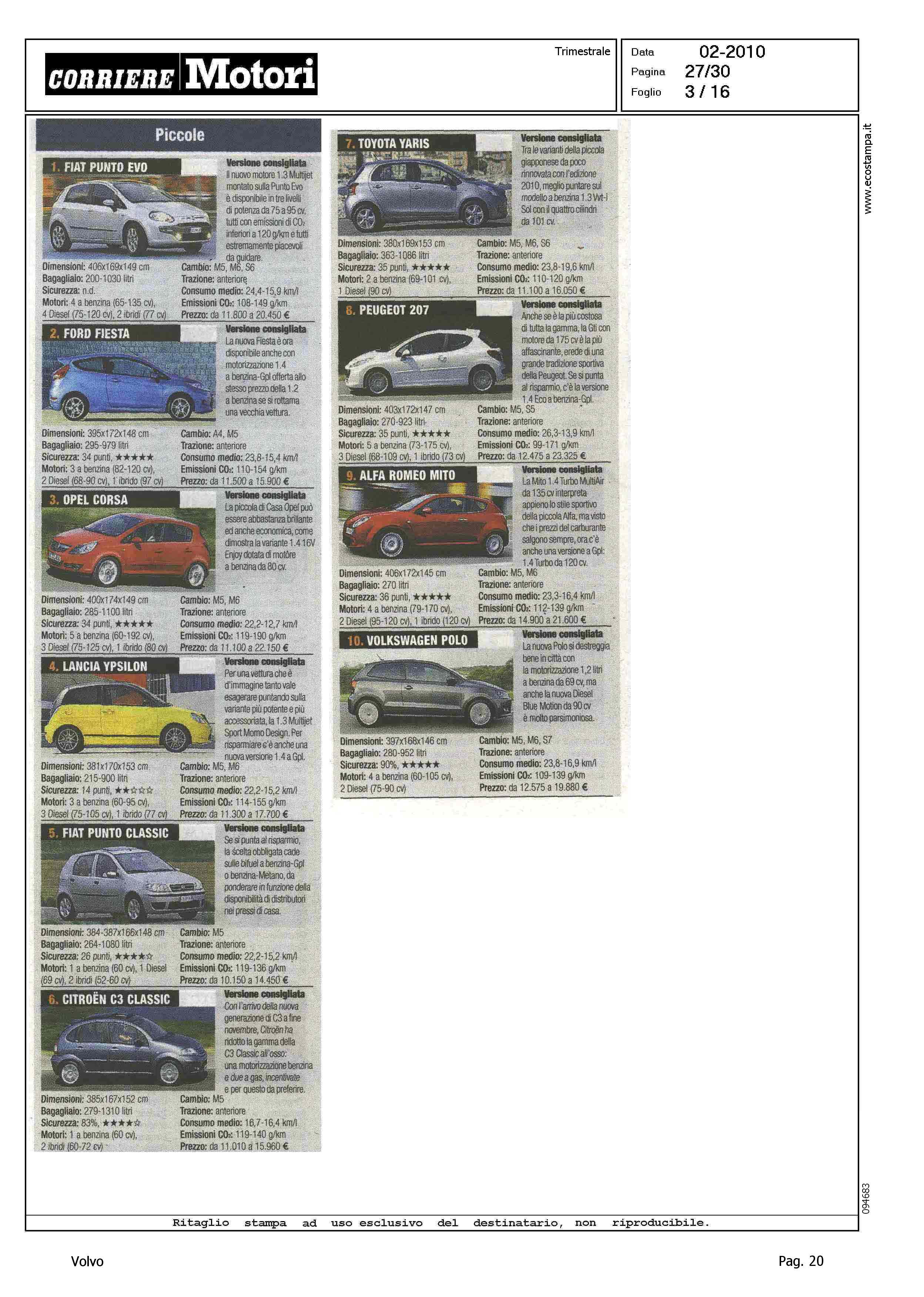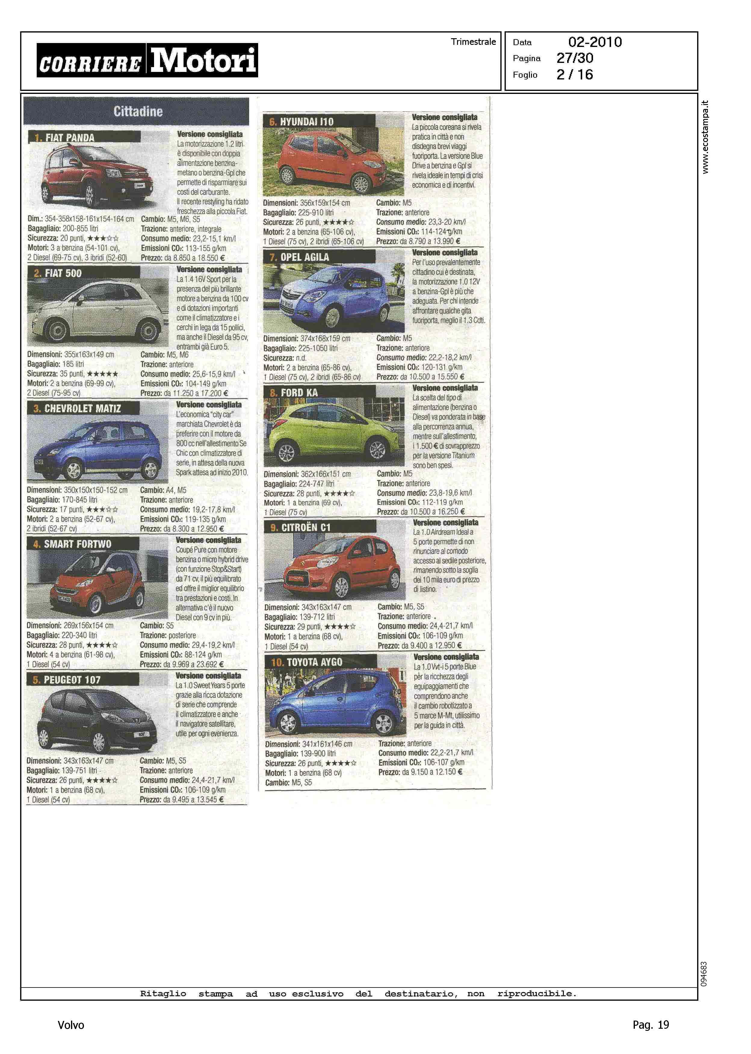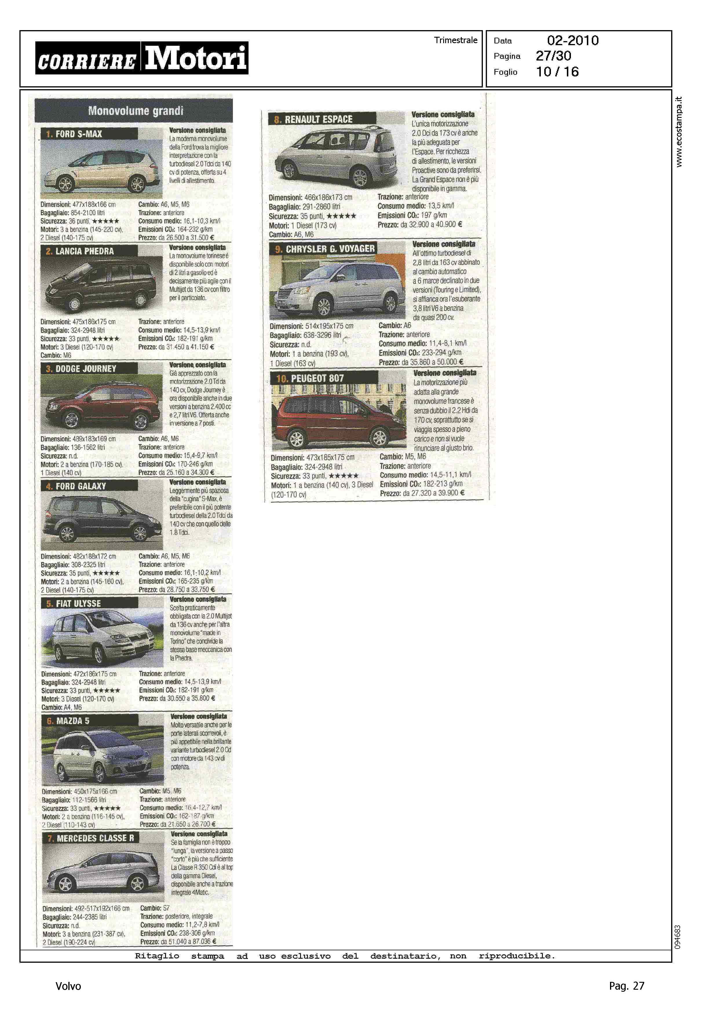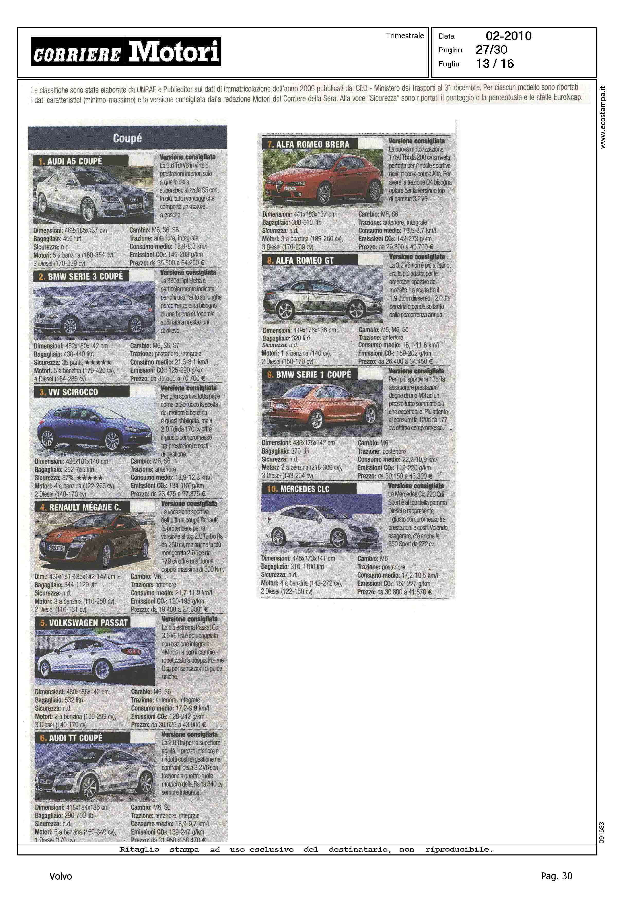 Highlight: CLASSIFICA MODELLI: BERLINE GRANDI, S80 (8) - STATION WAGON COMPATTE, V50 (8) - STATION WAGON GRANDI, V70 (10) - SUV GRANDI, XC90 (8)
