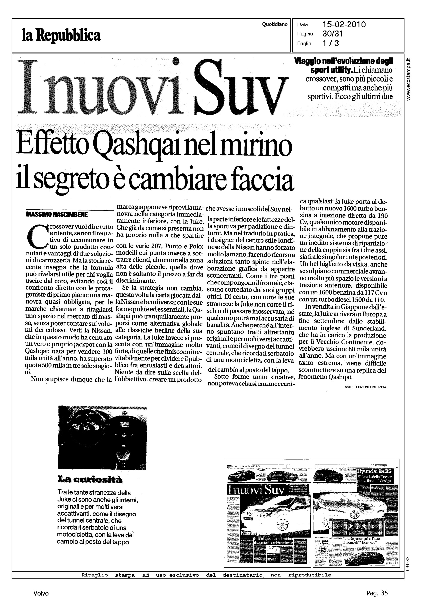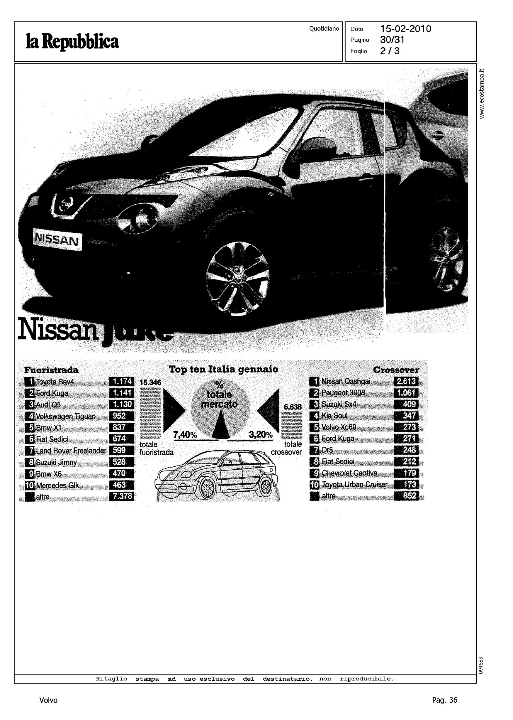 Author: NASCIMBENE, MASSIMOLine: XC60 Model: Subject: - Title: TOP TEN ITALIA GENNAIOHighlight: TABELLA TOP TEN GENNAIO - CROSSOVER, XC60 IN 5a POSIZIONE