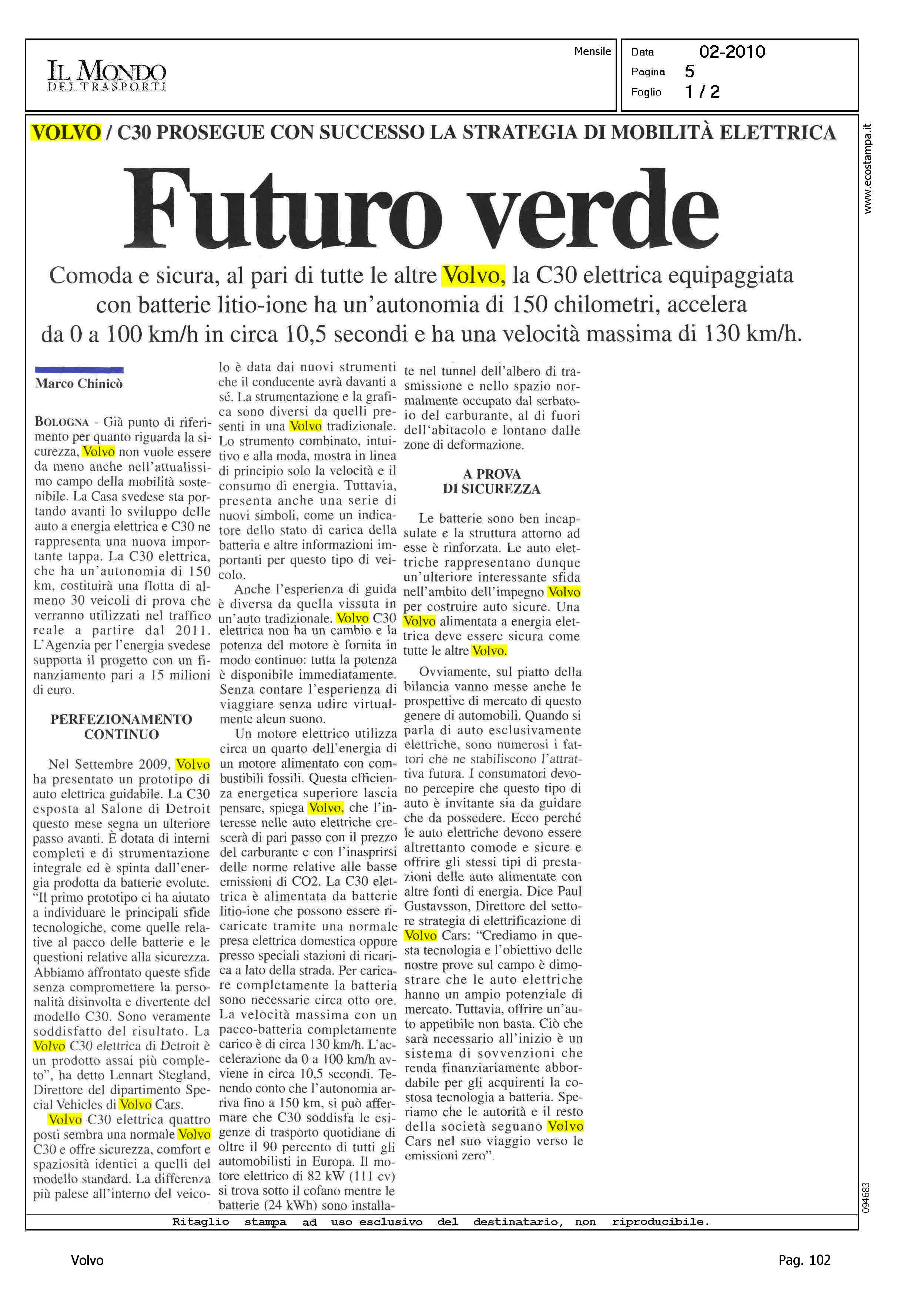 Highlight: PROFILO MISSIONE - INVESTIMENTI - STEGLAND SU C30 - TECNICA - ALIMENTAZIONE - DINAMICA DI MARCIA - AUTONOMIA - PRESTAZIONI - SICUREZZA