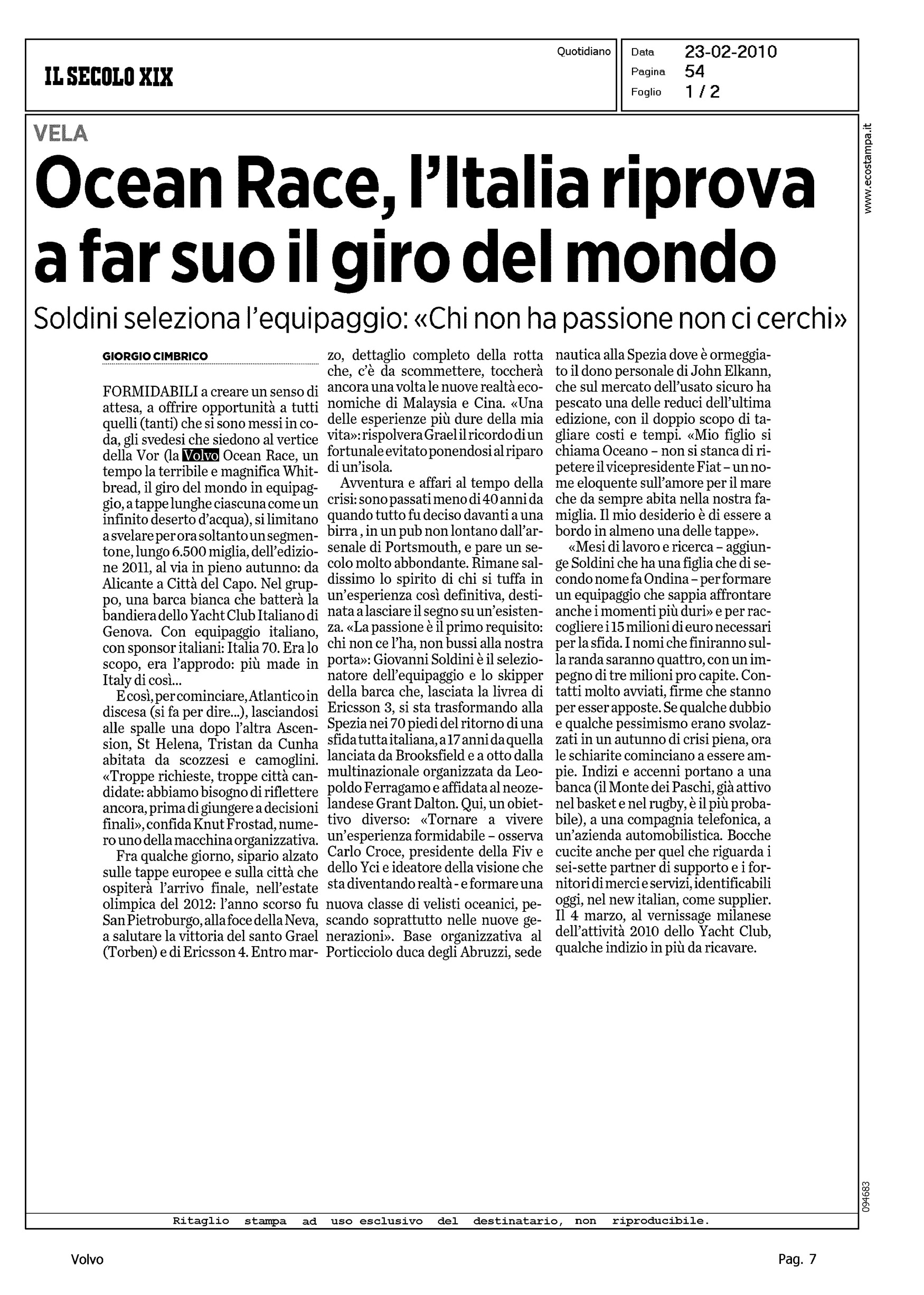Title: OCEAN RACE, L'ITALIA RIPROVA A FAR SUO IL GIRO DEL MONDO