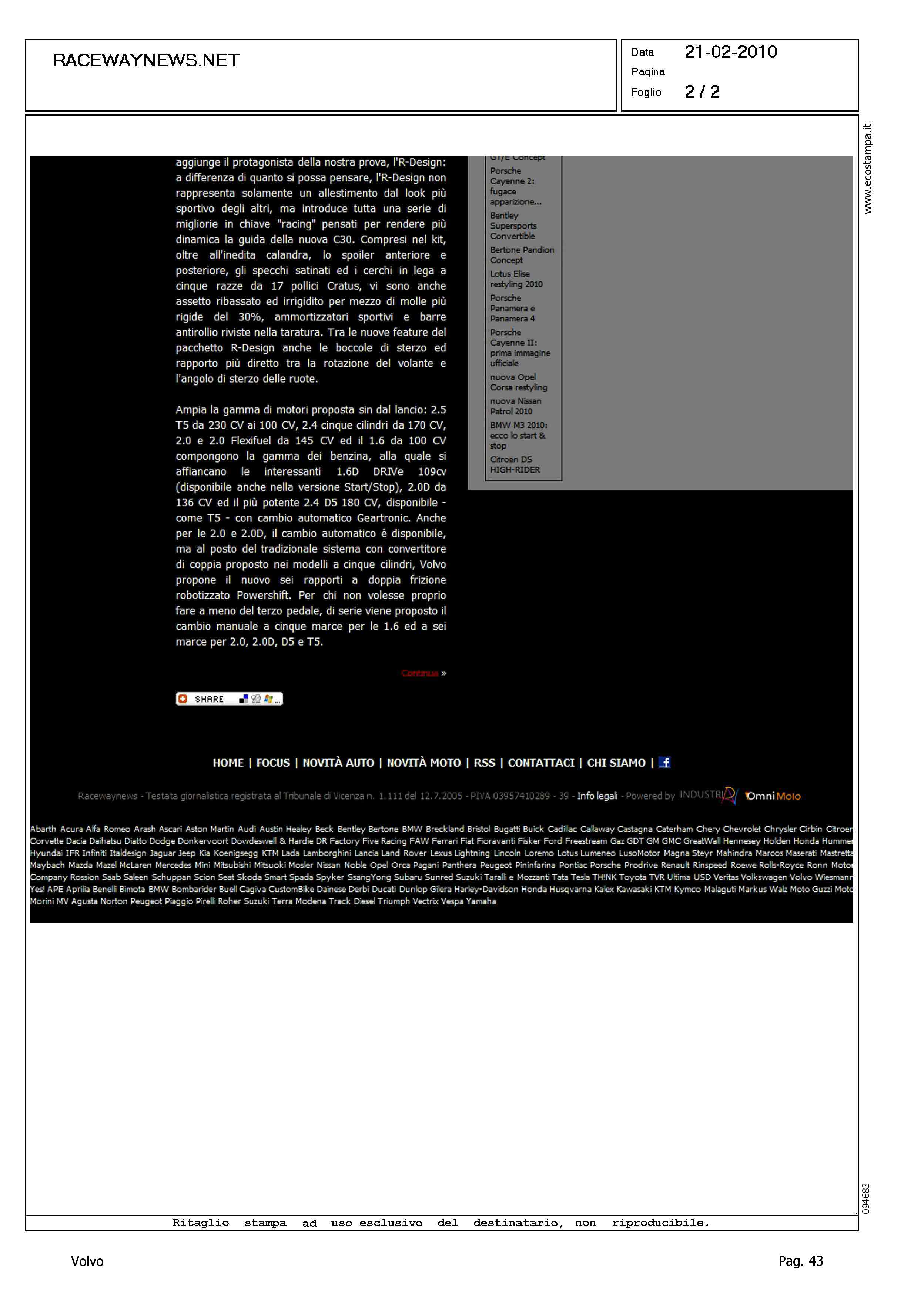 Author: PERUCCA, EMILIANOLine: Corporate Model: Volvo C30 Subject: - Title: VOLVO C30 R DESIGN 2.0D - TESTHighlight: DESIGN - ALLESTIMENTI - ACCESSORI - INTERNI - HANGSTROM - R DESIGN - MOTORI - POTENZE - CAMBIO