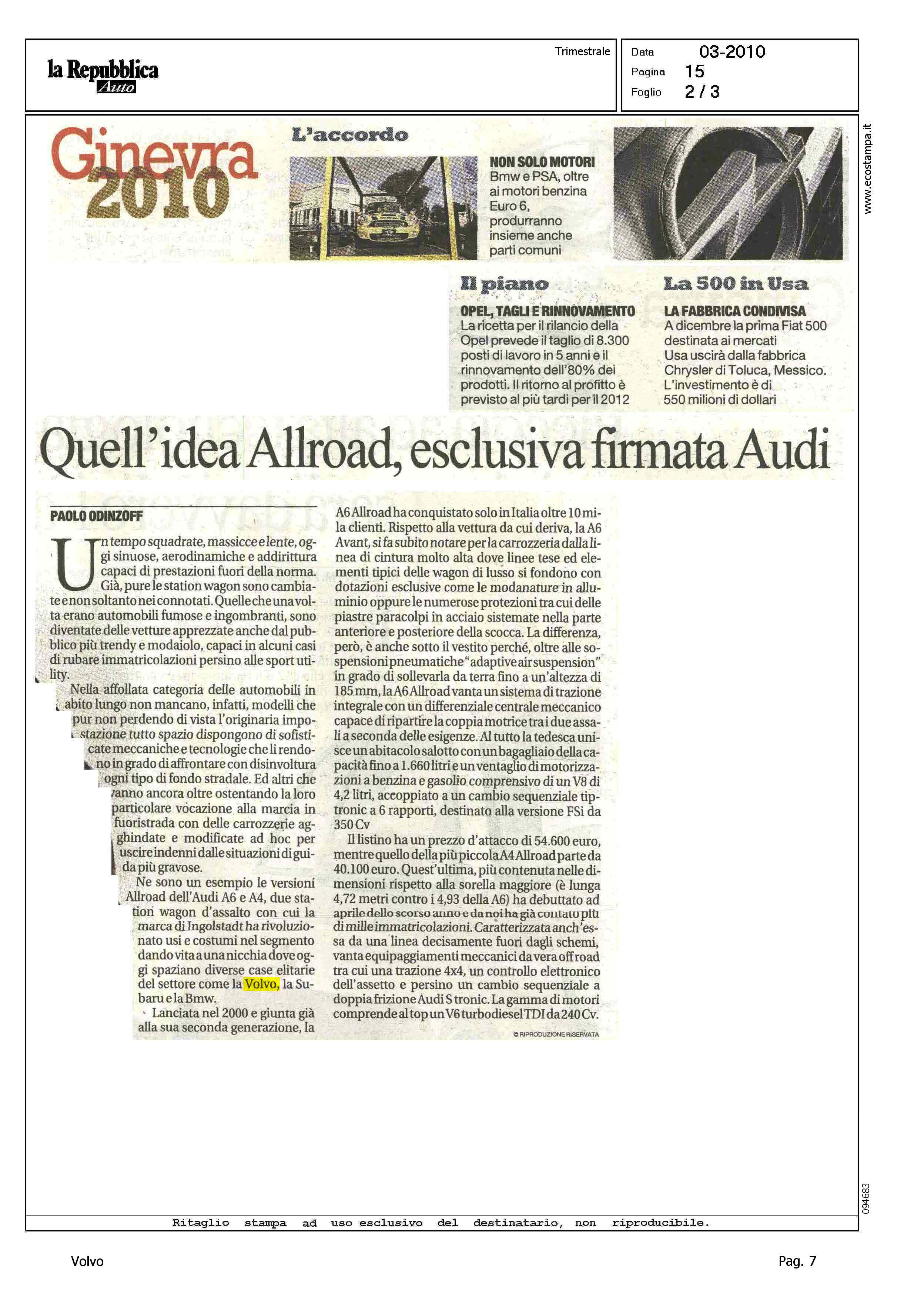 Author: ODINZOV, PAOLOLine: Corporate Model: Corporate Subject: - Title: QUELL'IDEA ALLROAD, ESCLUSIVA FIRMATA AUDIHighlight: CITAZIONE - SEGMENTO SPORT UTILITY PREMIUM