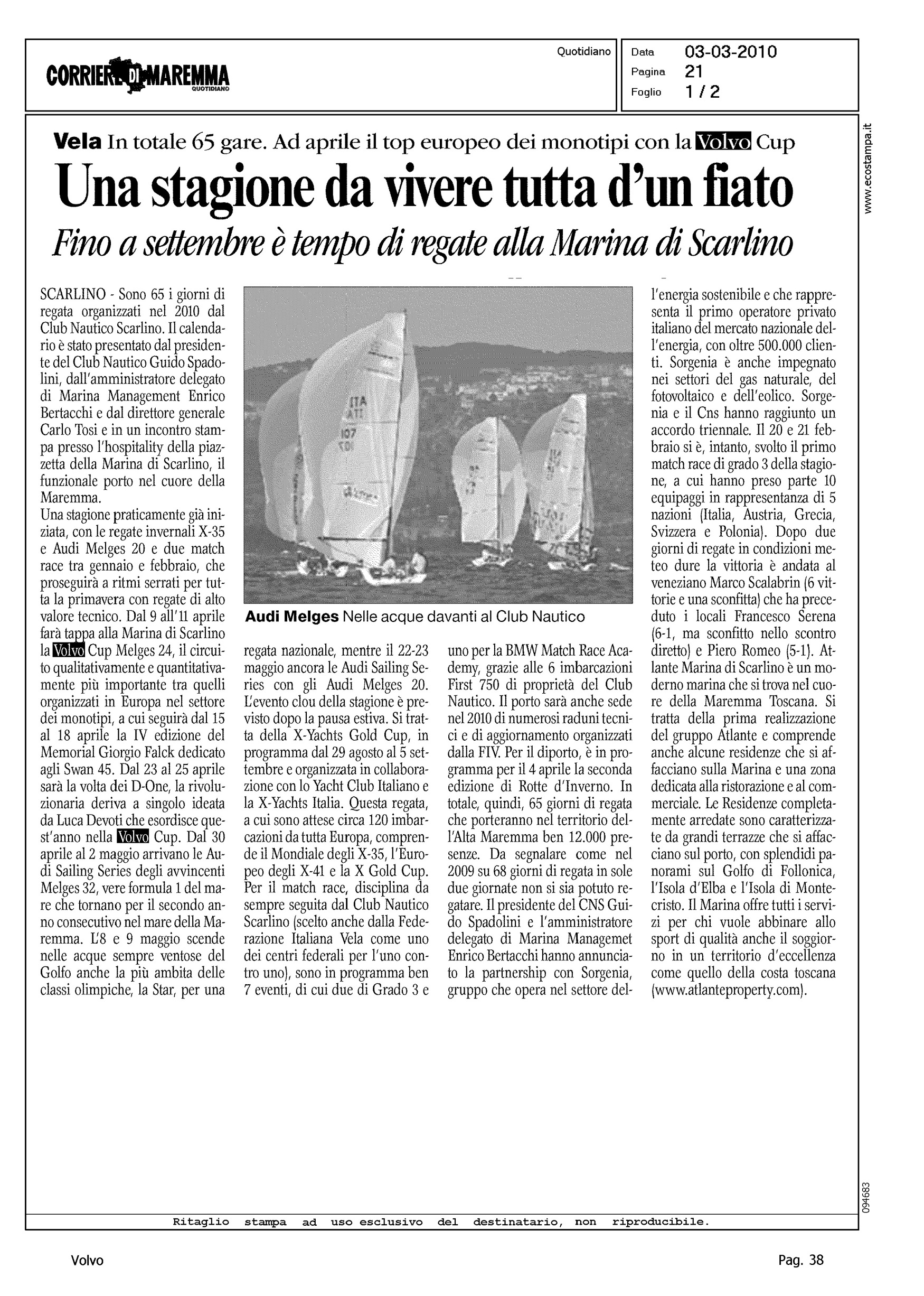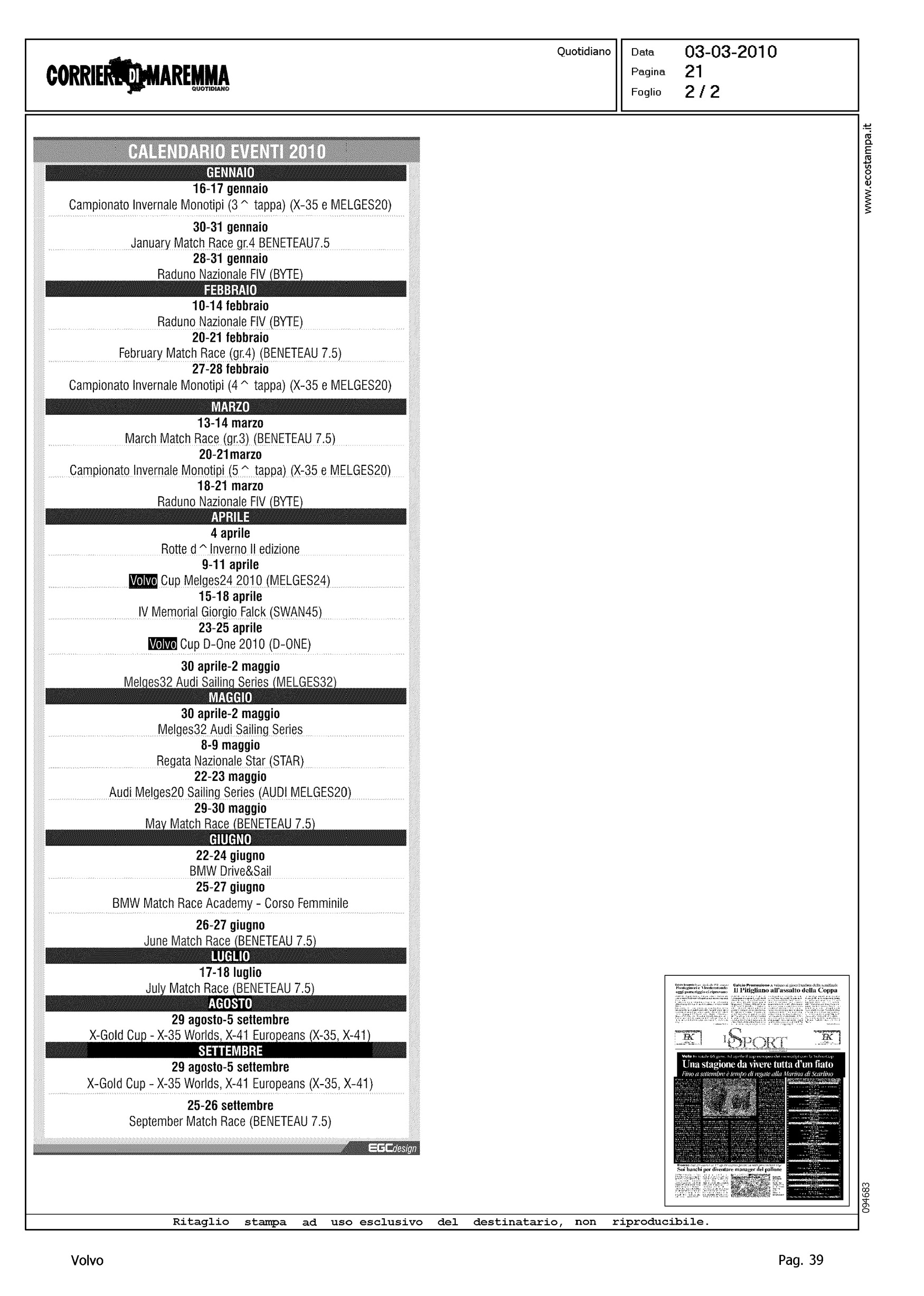Author: Line: Corporate Model: Corporate Subject: Volvo Cup Title: UNA STAGIONE DA VIVERE TUTTA D'UN FIATOHighlight: CALENDARIO REGATE