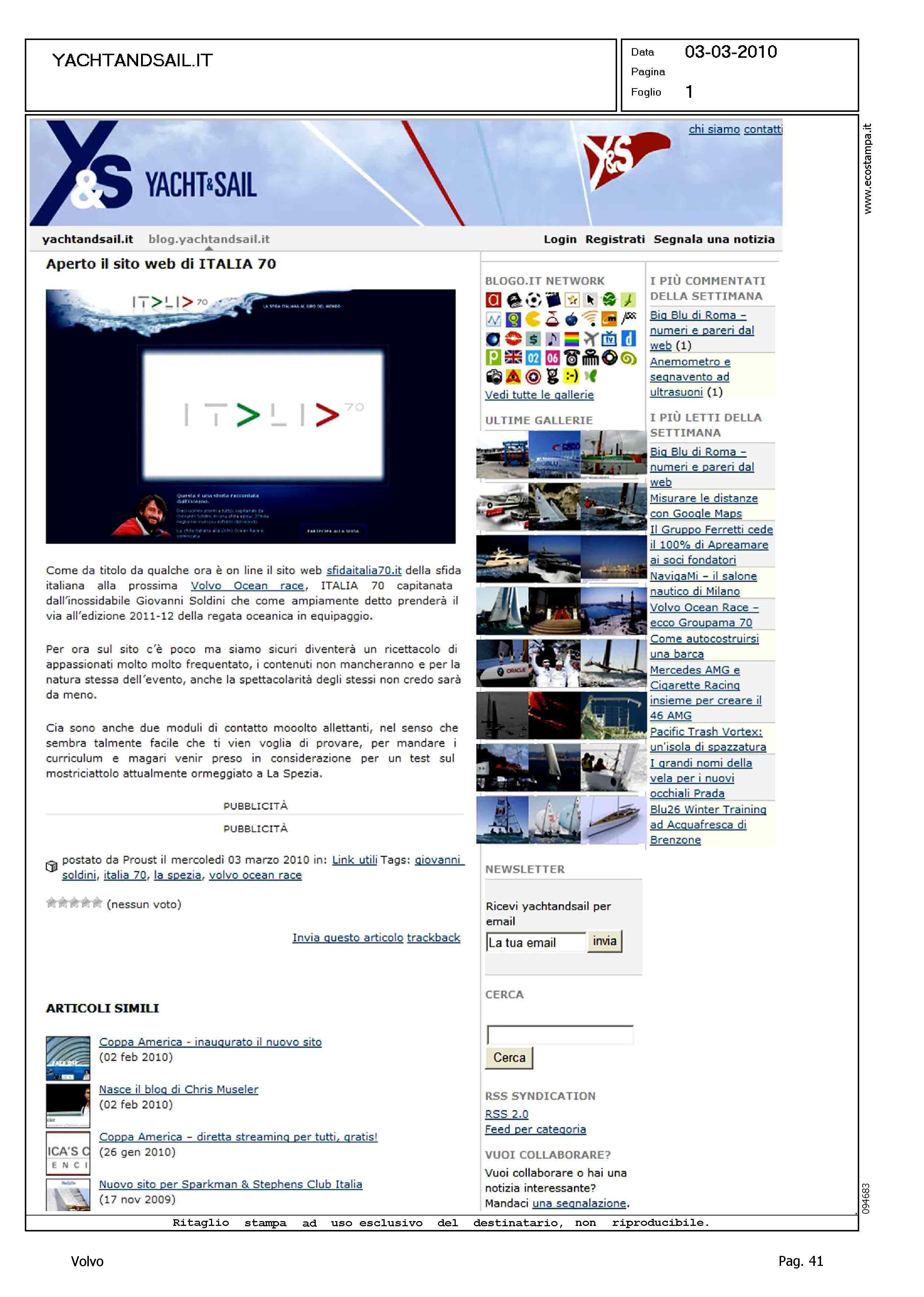 Author: Line: Corporate Model: Corporate Subject: Volvo Ocean Race Title: APERTO IL SITO WEB DI ITALIA 70Highlight: SITO WEB
