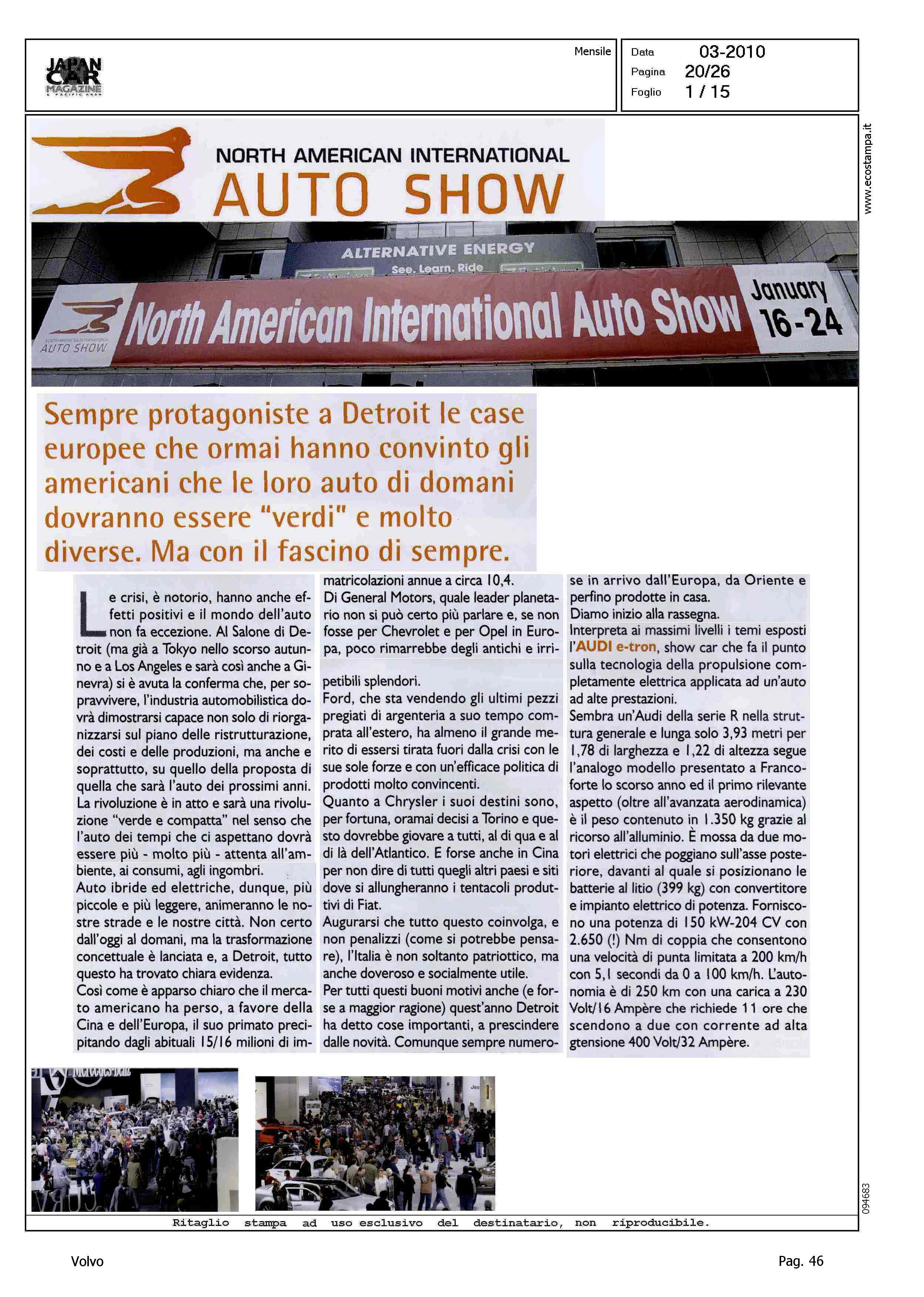 Author: Line: Corporate Model: Volvo C30 Subject: - Title: NORTH AMERICAN INTERNATIONA AUTO SHOWHighlight: DETROIT - SVILUPPO PROGETTO - ARCHITETTURA - PRESTAZIONI - AUTONOMIA - TEMPO DI RICARICA