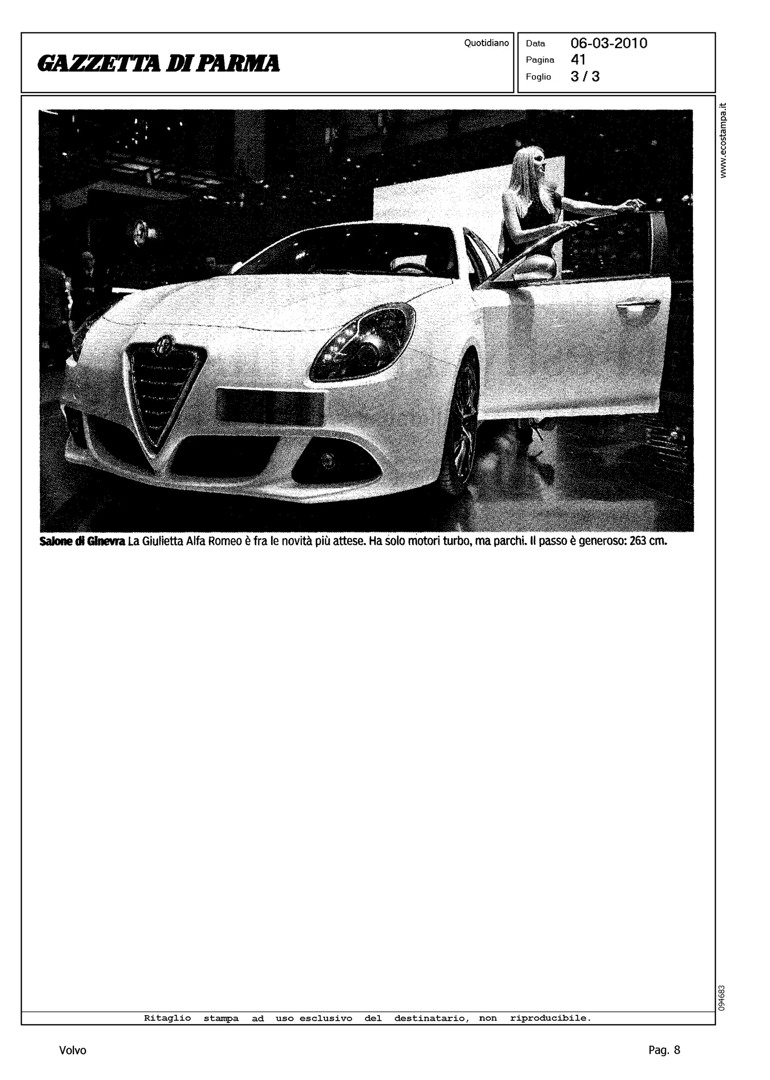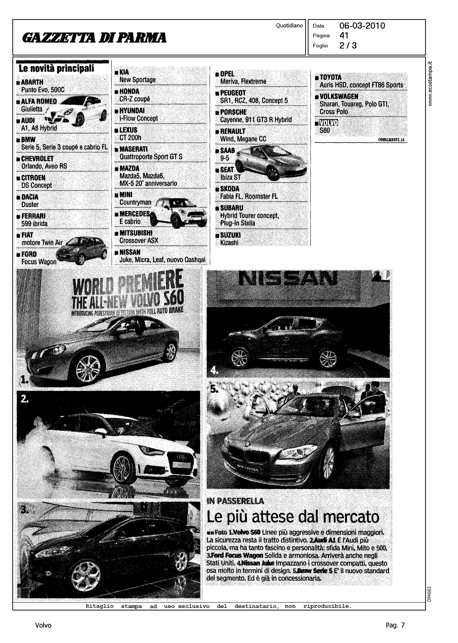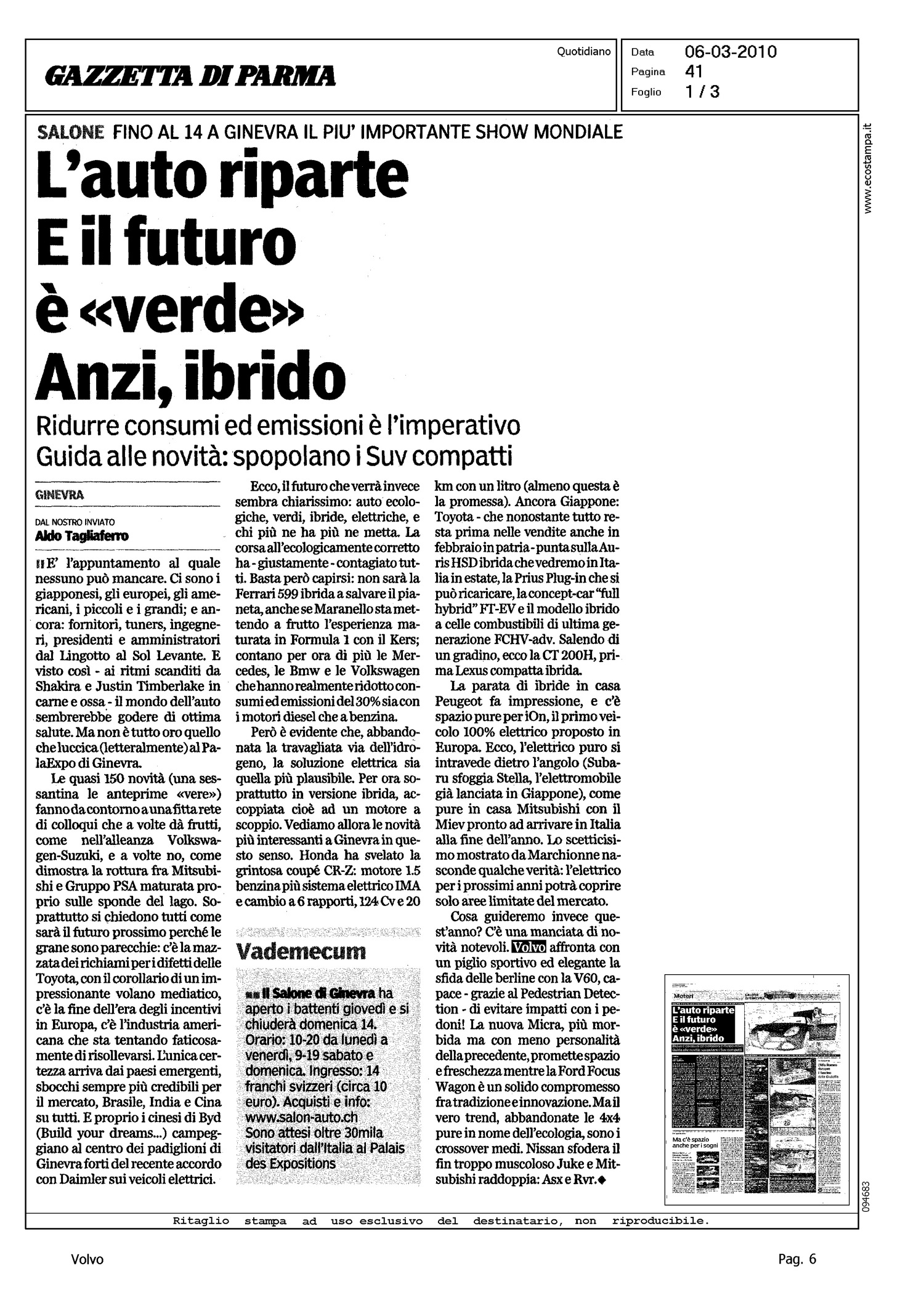 Author: TAGLIAFERRO, ALDOLine: S60 Model: Linea S60 Show Subject: - Title: L'AUTO RIPARTE - E IL FUTURO E' "VERDE" - ANZI, IBRIDOHighlight: DESIGN - PEDESTRIAN DETECTION