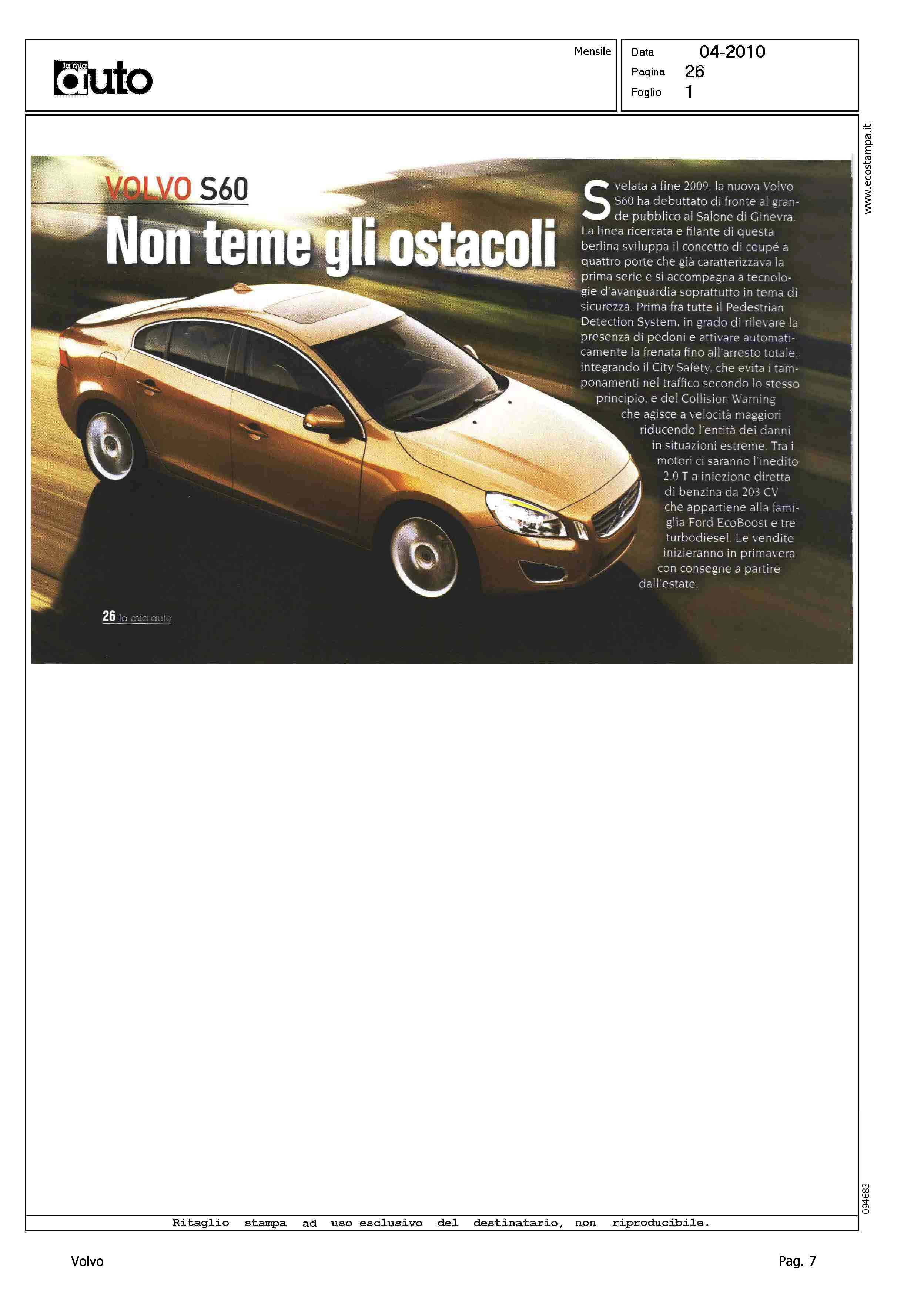 Author: Line: S60 Model: Linea S60 Show Subject: - Title: VOLVO S60 - NON TEME GLI OSTACOLIHighlight: GINEVRA - DESIGN - PEDESTRIAN DETECTION - MOTORI