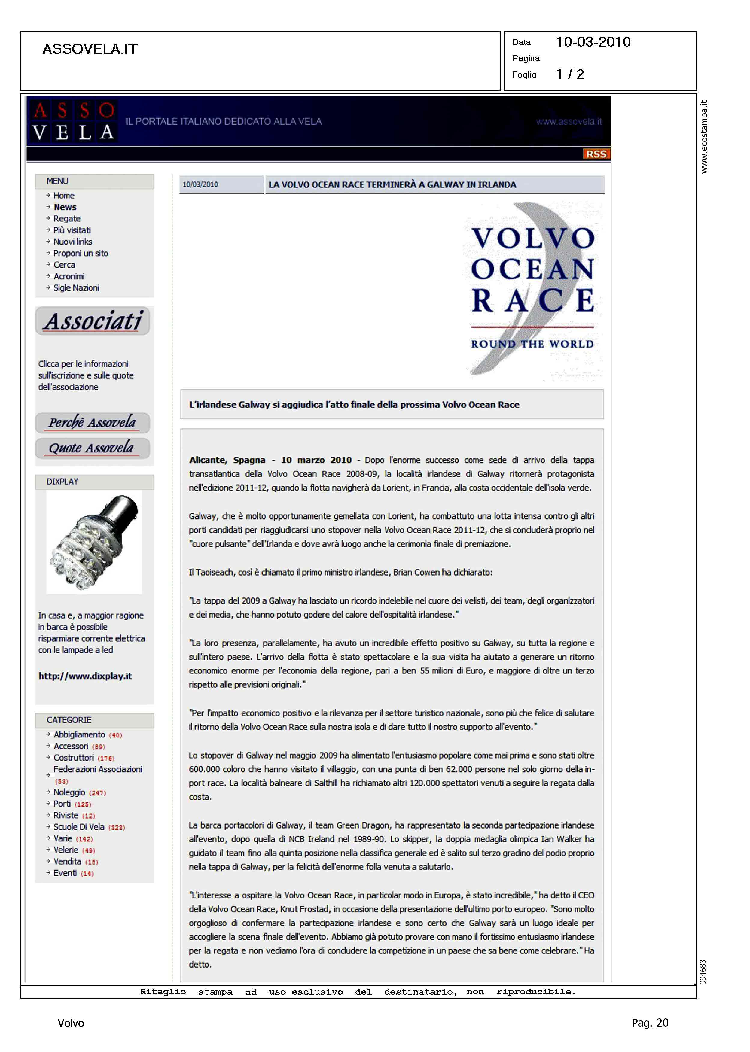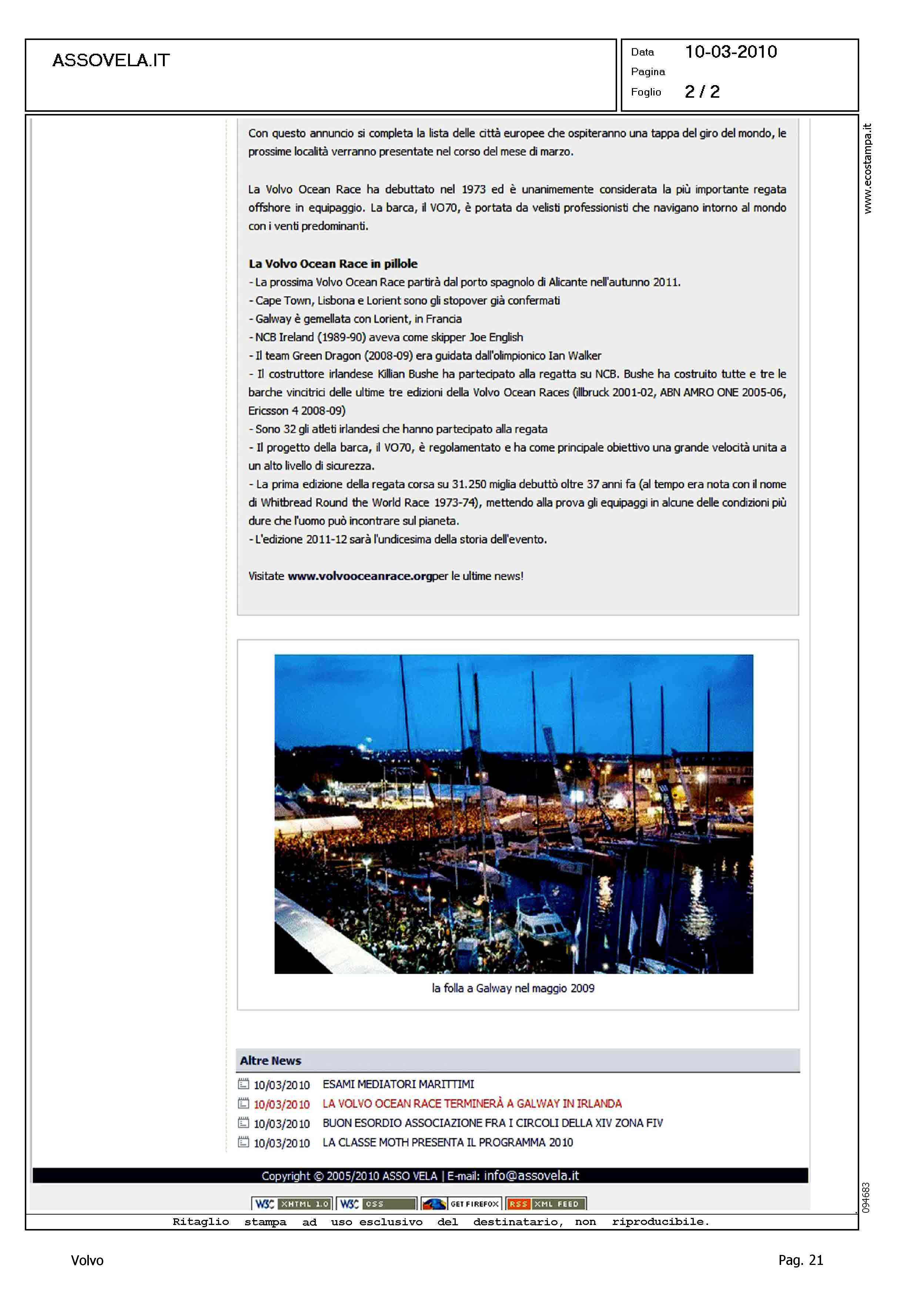 Title: L'IRLANDESE GALWAY SI AGGIUDICA L'ATTO FINALE DELLA PROSSIMA VOLVO OCEAN RACE