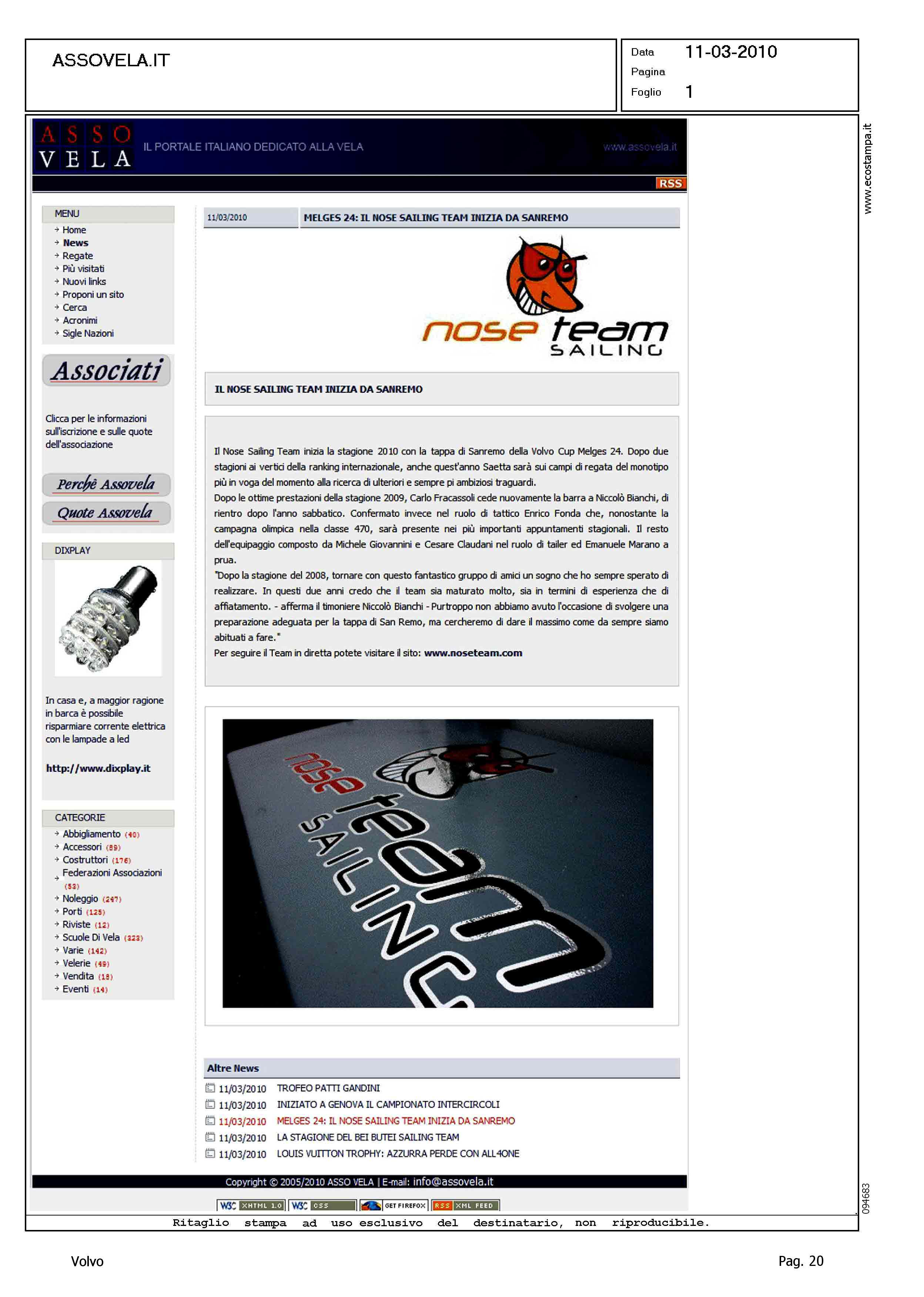 Author: Line: Corporate Model: Corporate Subject: Volvo Cup Title: IL NOSE SAILING TEAM INIZIA DA SANREMOHighlight: REGATA SANREMO