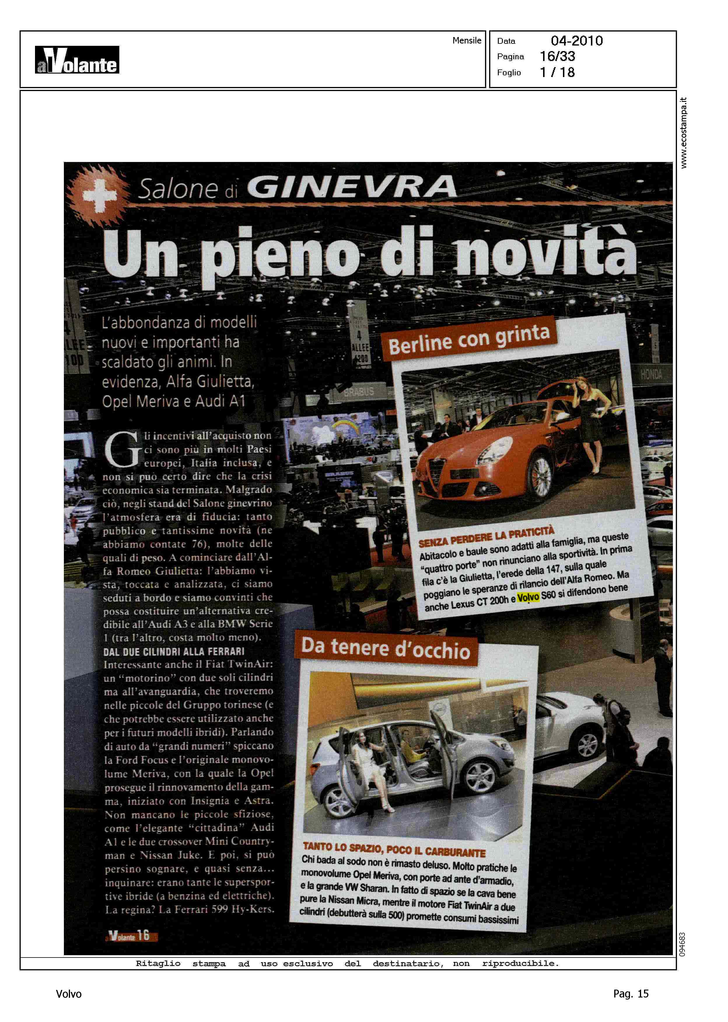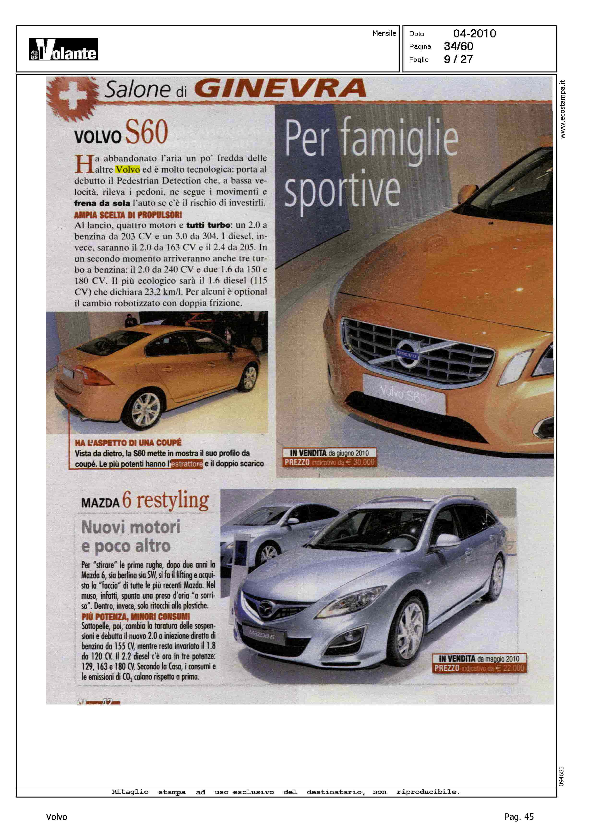 Author: Line: S60 Model: Linea S60 Show Subject: - Title: SALONE DI GINEVRA - UN PIENO DI NOVITA' - VOLVO S60 - PER FAMIGLIE SPORTIVEHighlight: DESIGN - PEDESTRIAN DETECTION - MOTORI