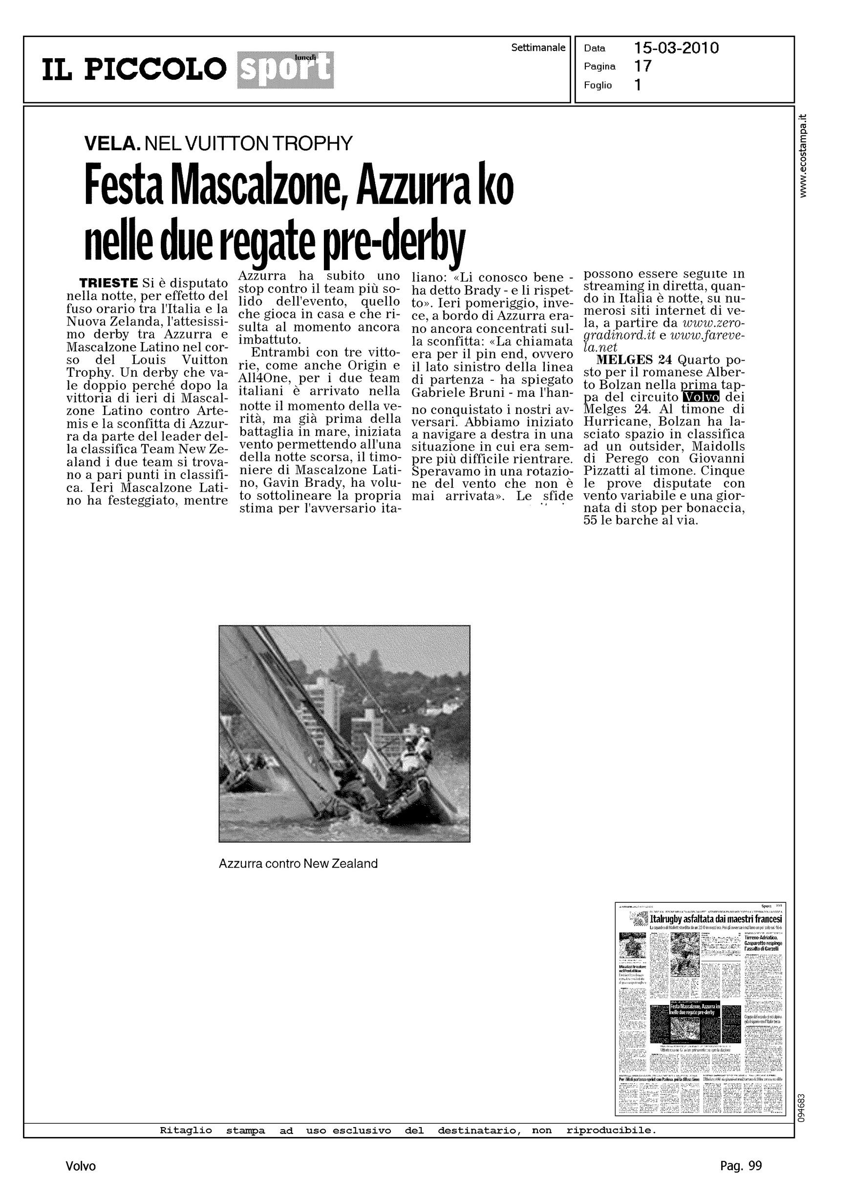Author: Line: Corporate Model: Corporate Subject: Volvo Cup Title: MELGES 24Highlight: REGATA PRIMA TAPPA
