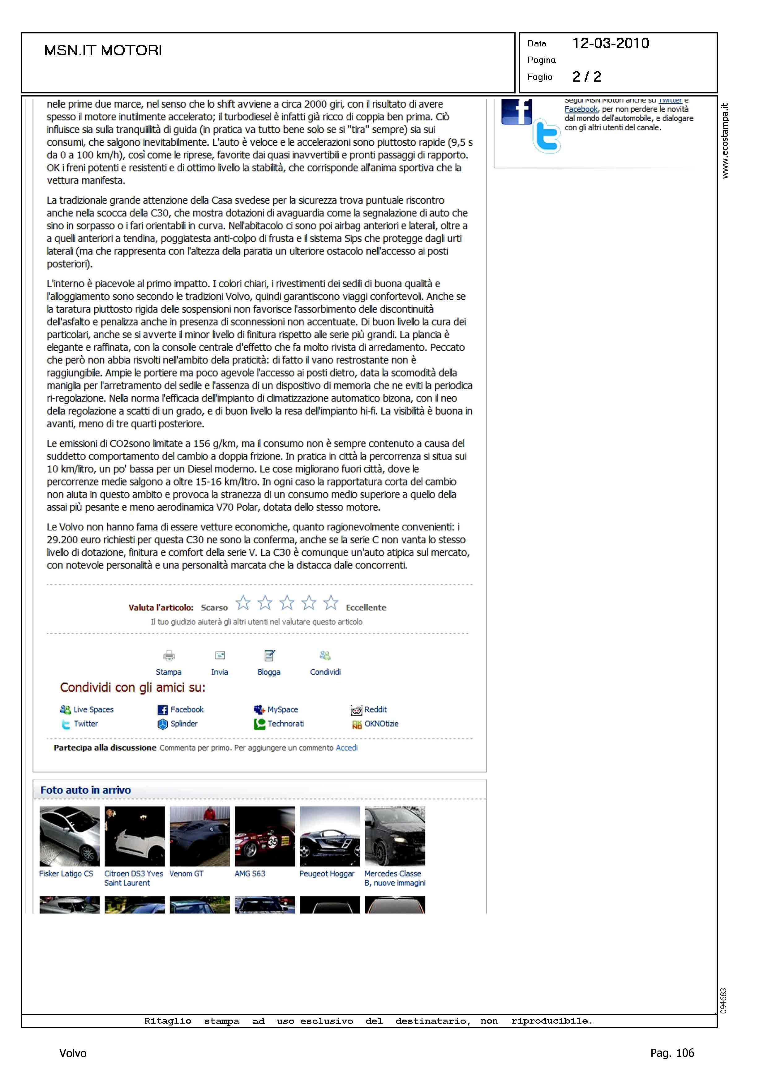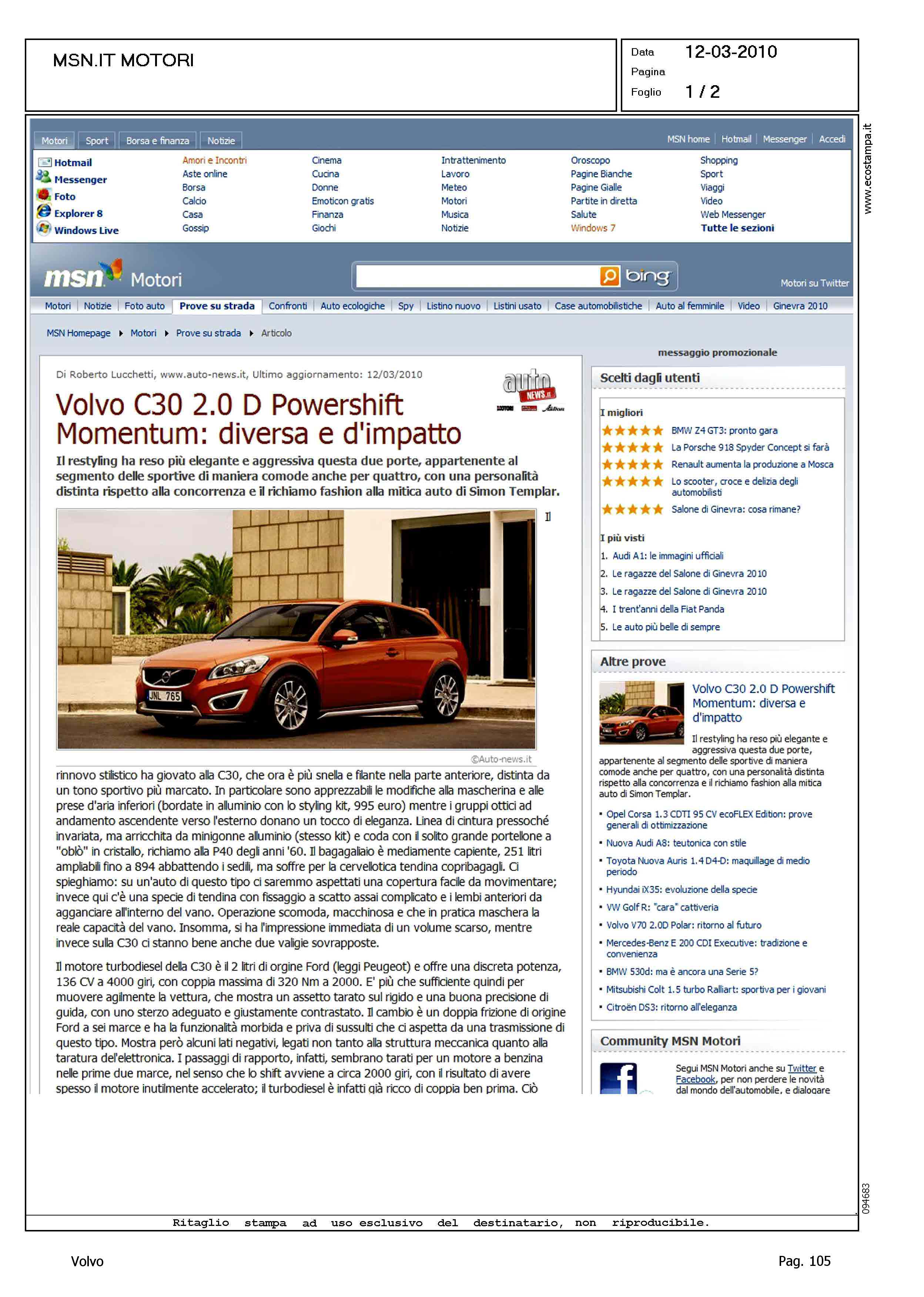 Title: VOLVO C30 2.0D POWERSHIFT MOMENTUM: DIVERSA E D'IMPATTO