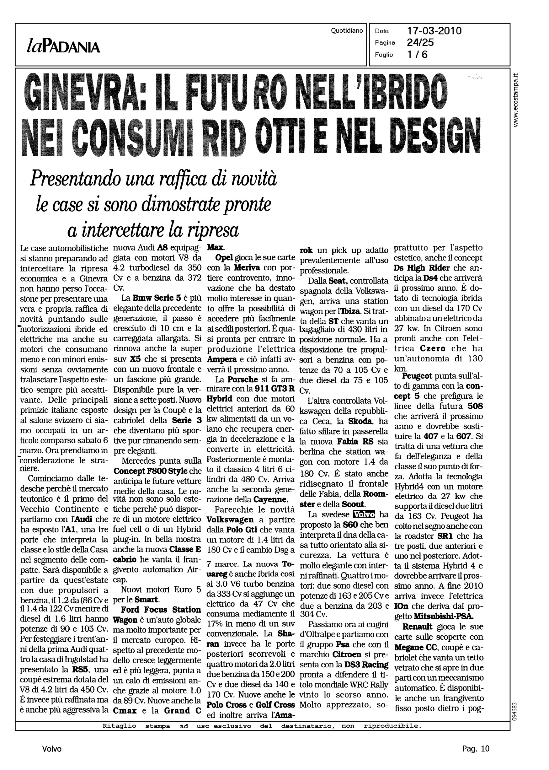 Author: Line: S60 Model: Linea S60 Show Subject: - Title: GINEVRA: IL FUTURO NELL'IBRIDO NEI CONSUMI RIDOTTI E NEL DESIGNHighlight: VALORE VOLVO - DESIGN - MOTORI