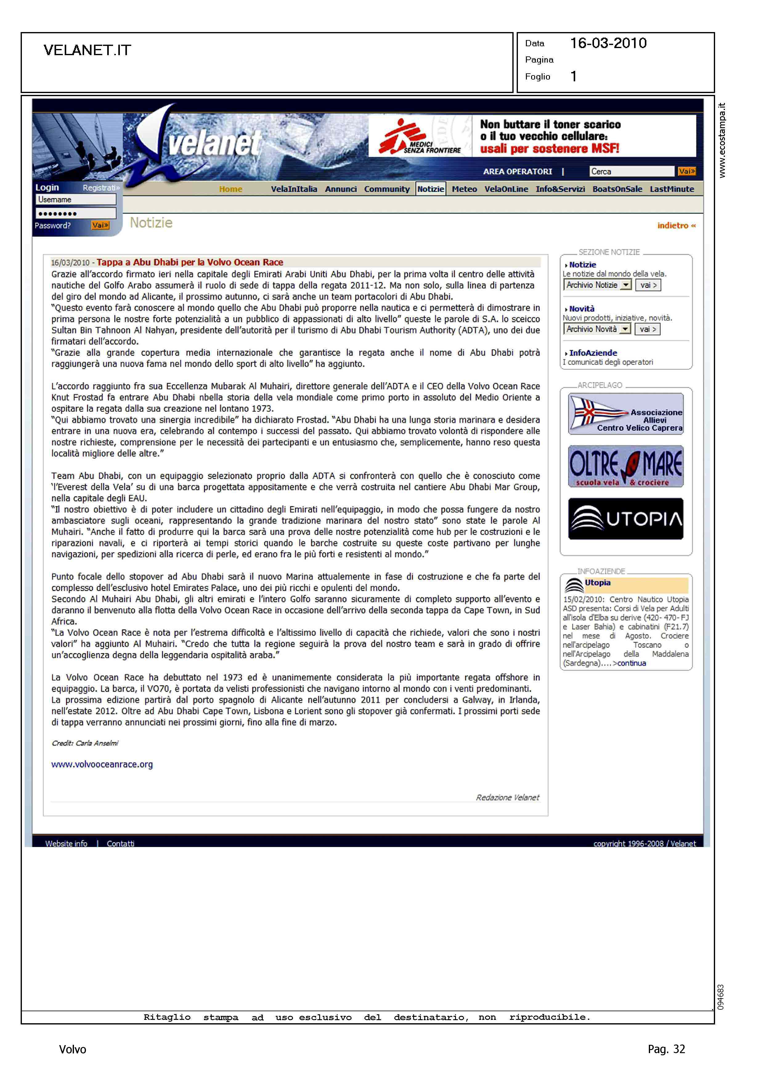 Title: TAPPA AD ABU DHABI PER LA VOLVO OCEAN RACE