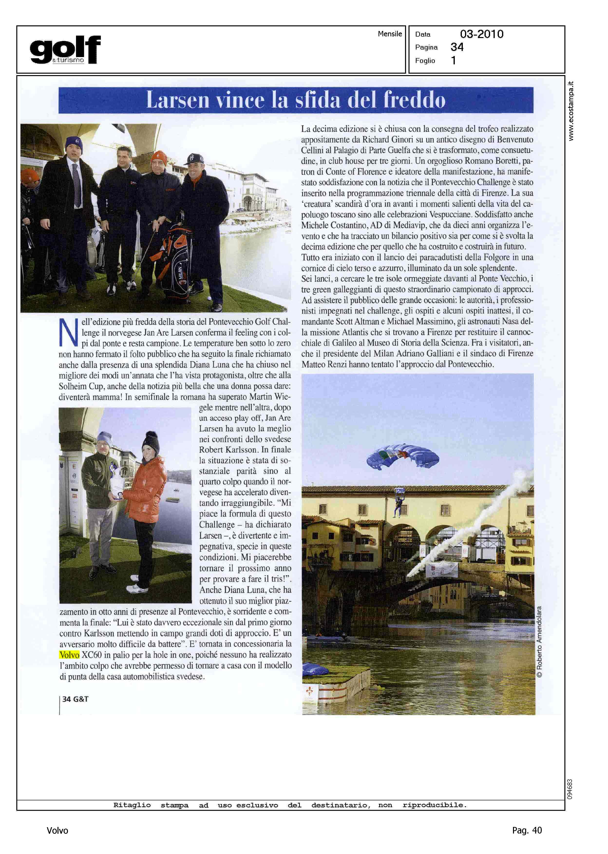 Author: Line: Corporate Model: Corporate Subject: Volvo Master Title: LARSEN VINCE LA SFIDA DEL FREDDOHighlight: ATTIVITA' GOLF A FIRENZE