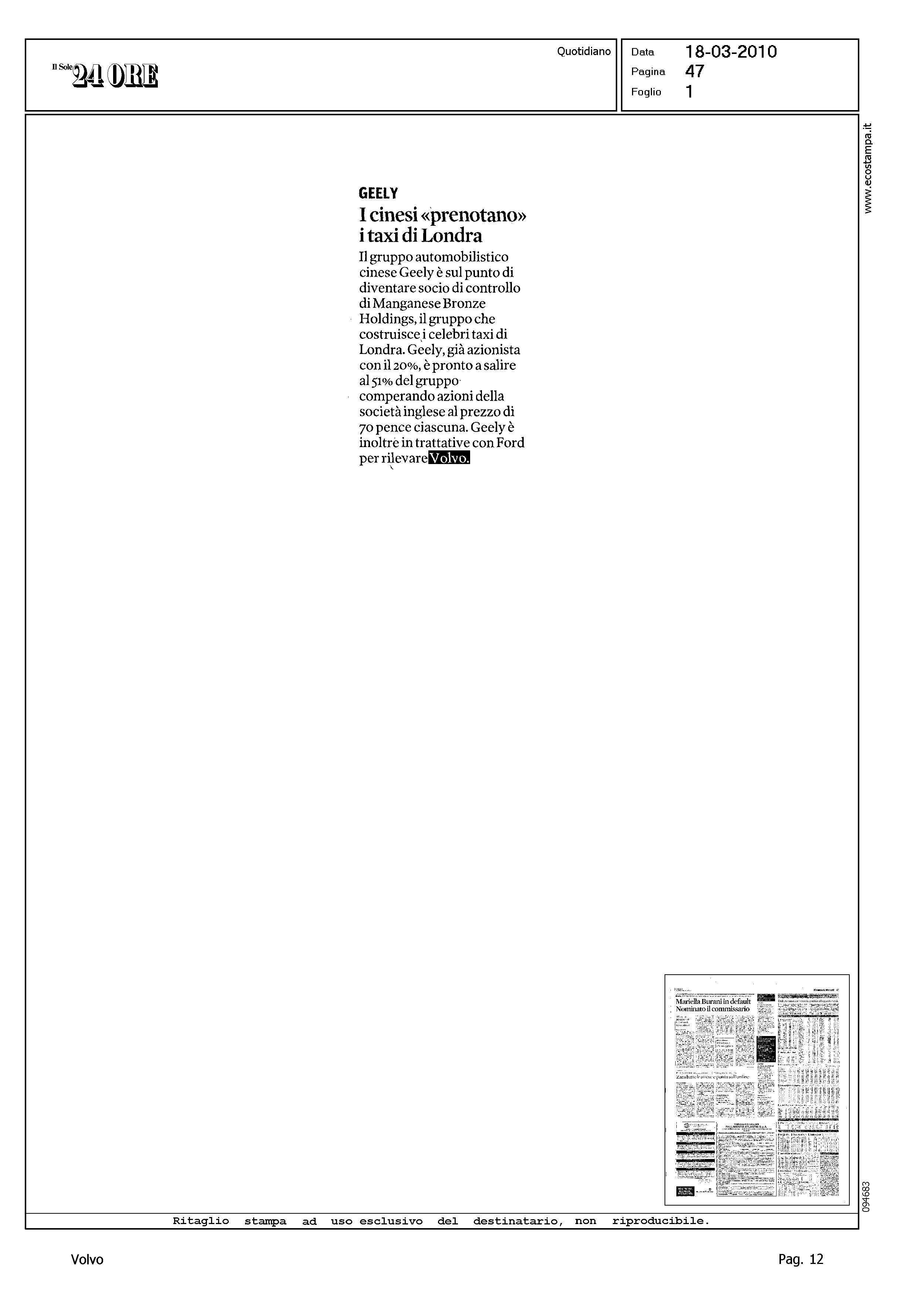 Author: Line: Corporate Model: Corporate Subject: - Title: GEELYHighlight: CITAZIONE TRATTATIVE