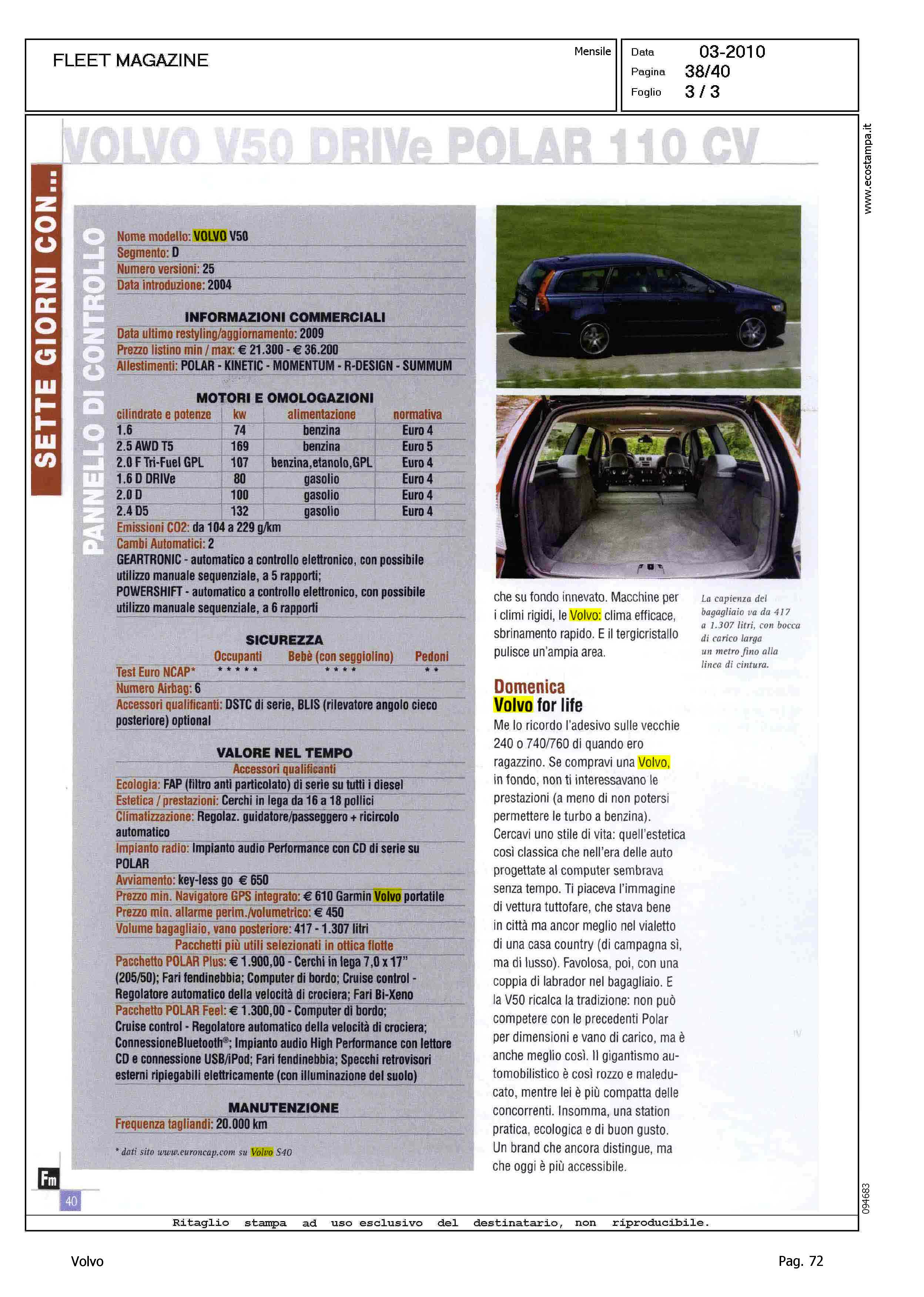Line: Corporate Model: Volvo S40 - V50 Subject: -