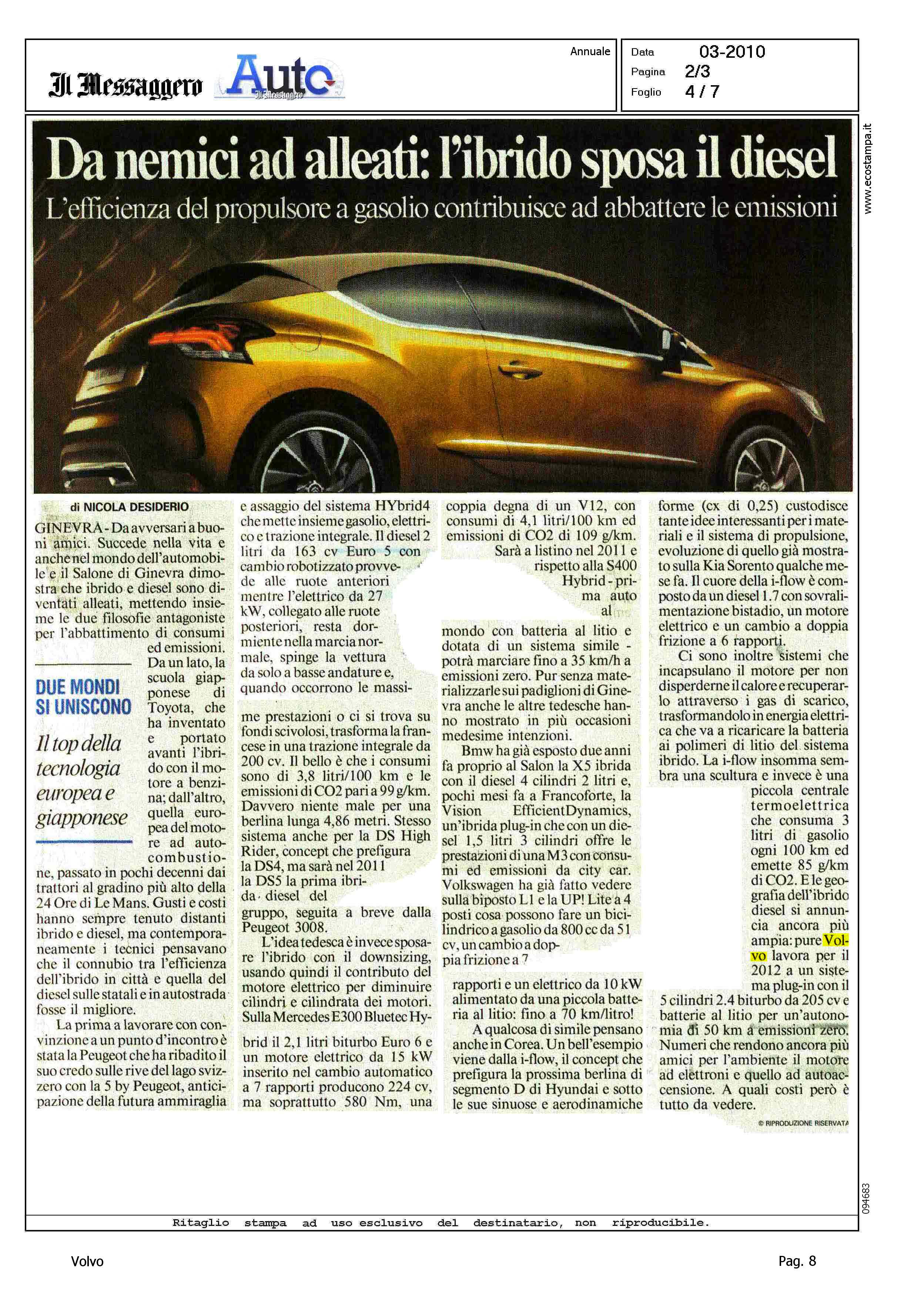 Author: DESIDERIO, NICOLALine: Corporate Model: Corporate Subject: - Title: DA NEMICI AD ALLEATI: L'IBRIDO SPOSA IL DIESELHighlight: PROGETTO MOTORE IBRIDO
