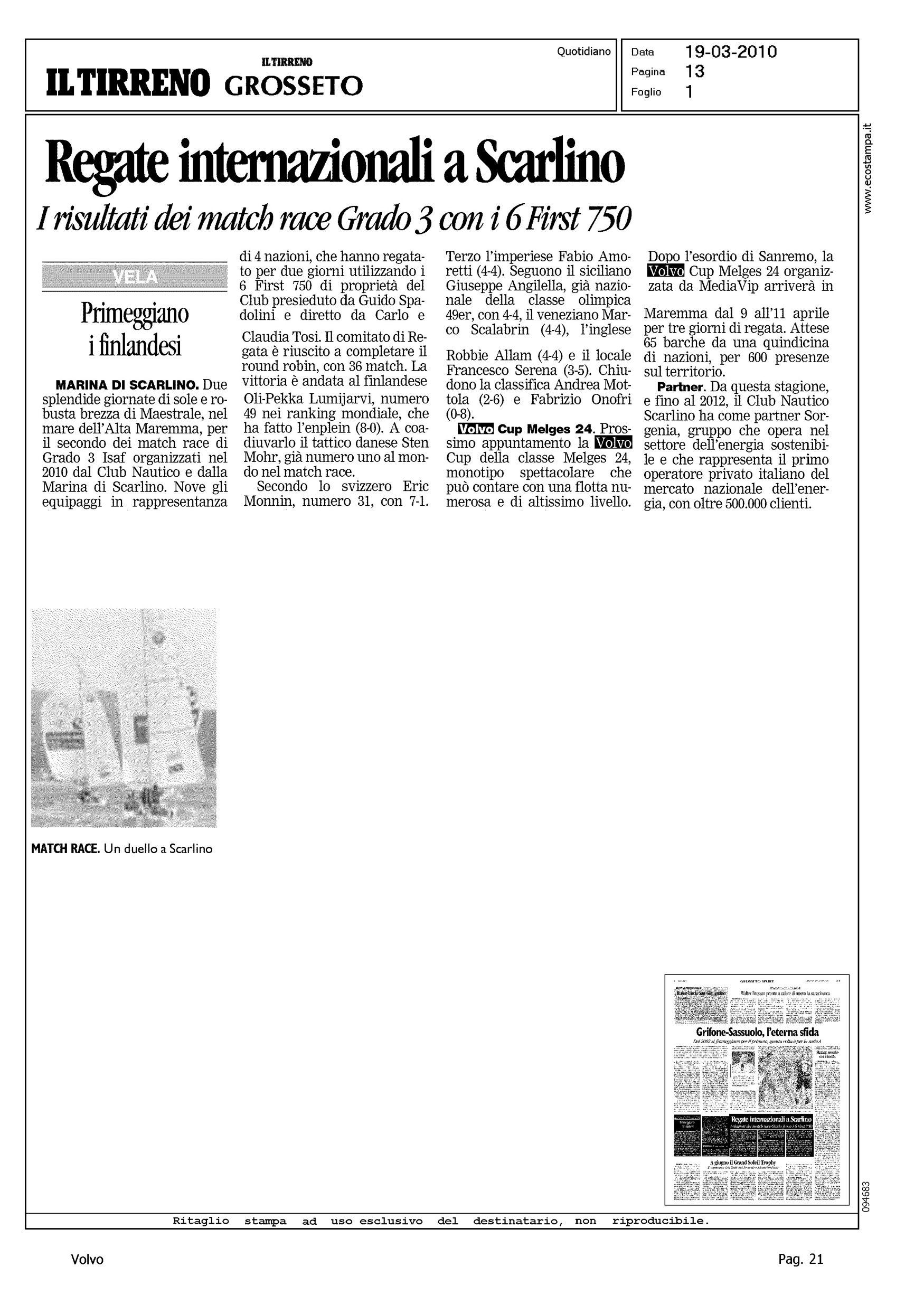 Author: Line: Corporate Model: Corporate Subject: Volvo Cup Title: REGATE INTERNAZIONALI A SCARLINOHighlight: (EDIZIONE GROSSETO) - REGATA SCARLINO