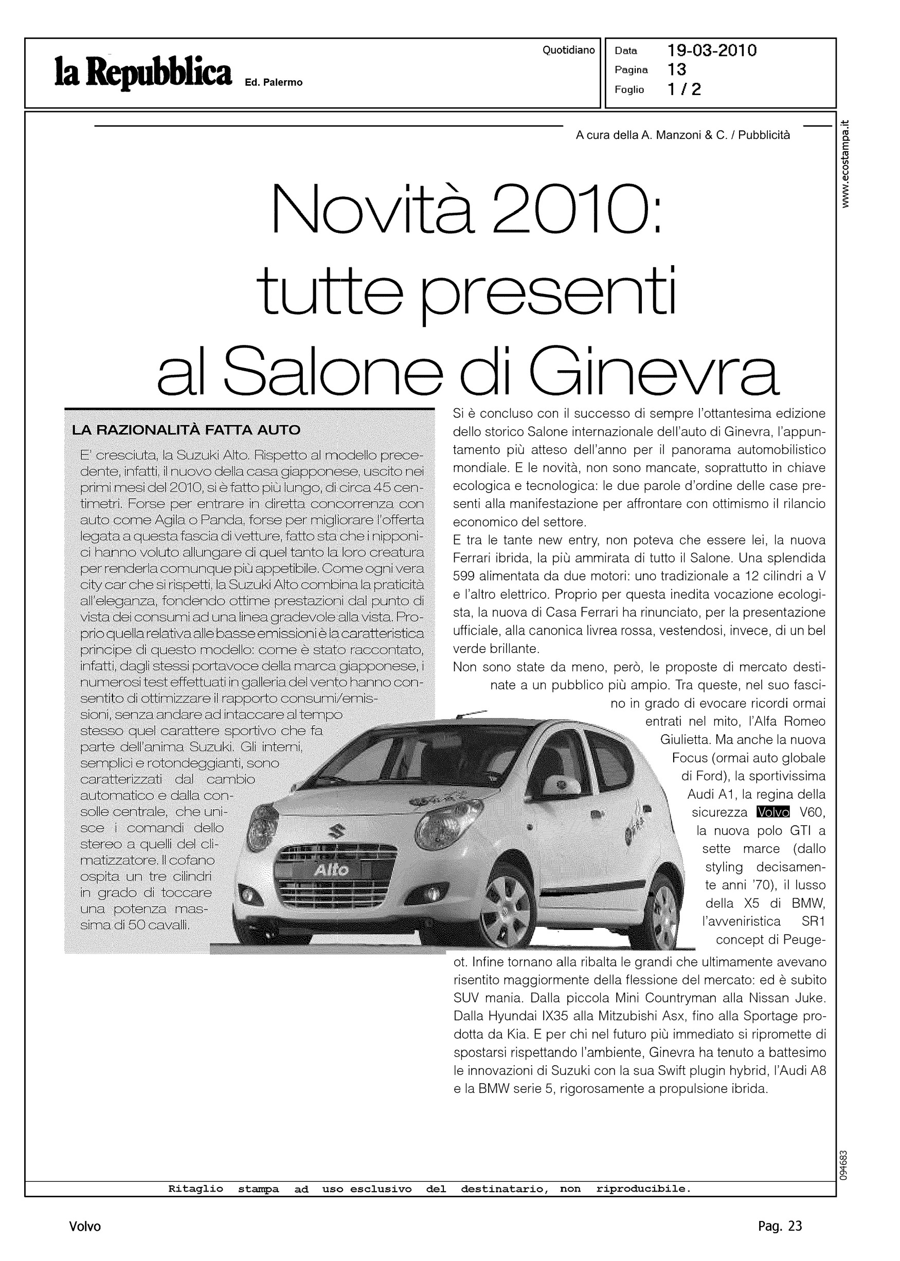 Author: Line: S60 Model: Linea S60 Show Subject: - Title: NOVITA' 2010: TUTTI PRESENTI AL SALONE DI GINEVRAHighlight: (EDIZIONE PALERMO) - CITAZIONE NOVITA' DAL SALONE