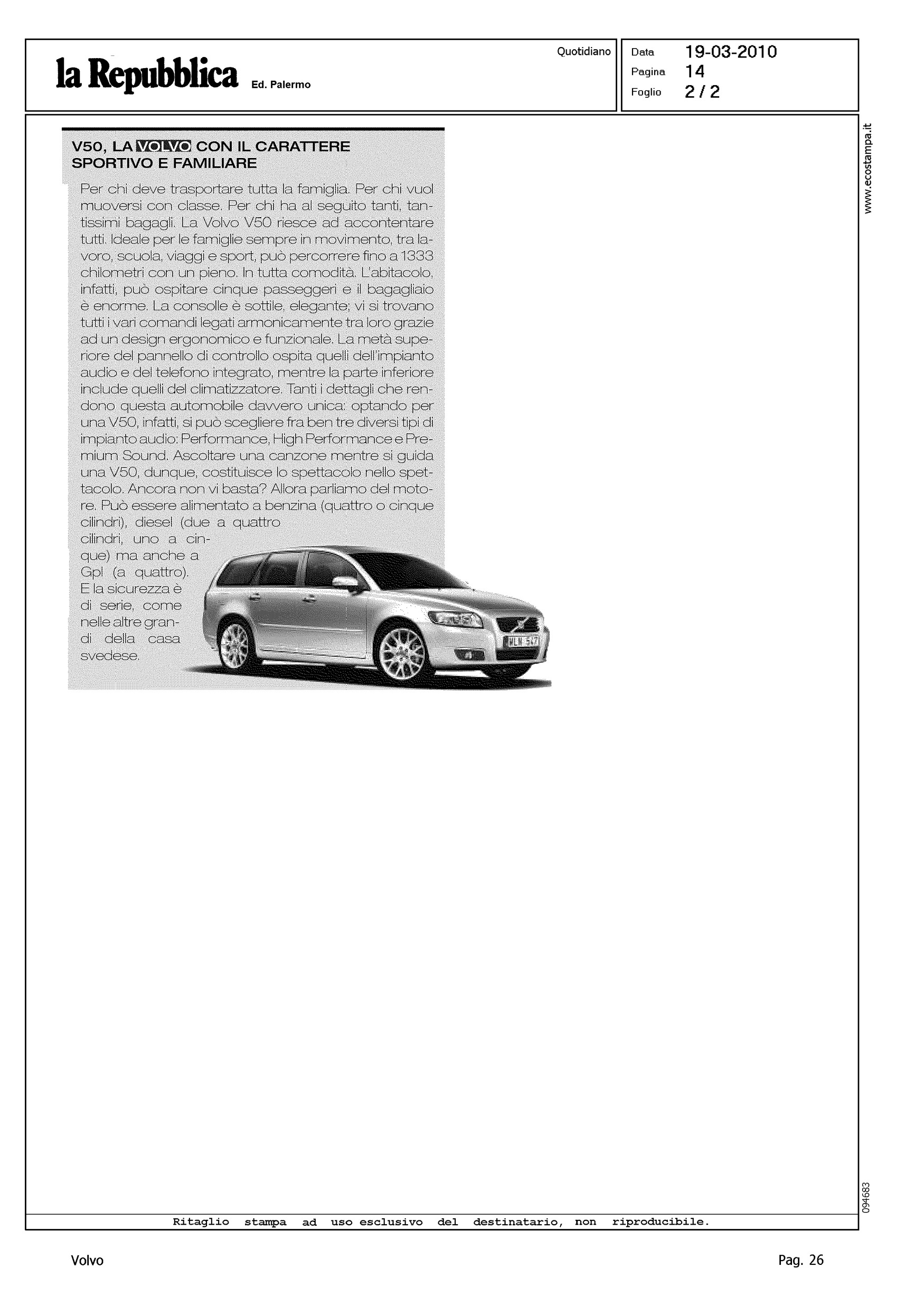 Title: V50, LA VOLVO CON IL CARATTERE SPORTIVO E FAMILIARE
