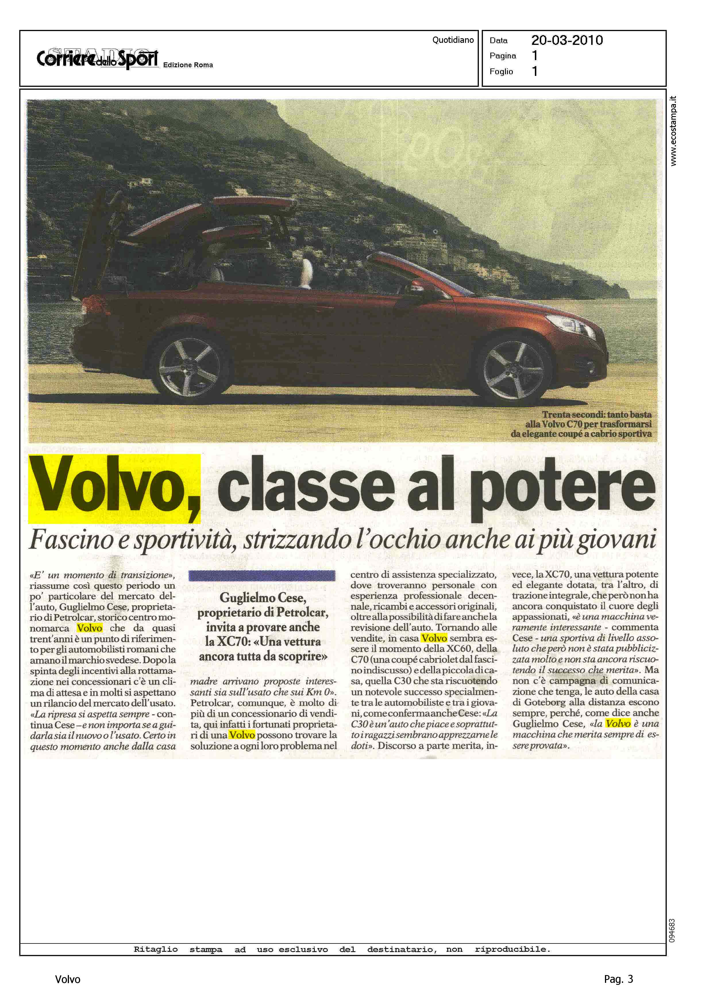 Highlight: (EDIZIONE ROMA) G.CESE (PETROLCAR) SU GAMMA VOLVO, C30, C70, XC70 - AUTO A KM ZERO