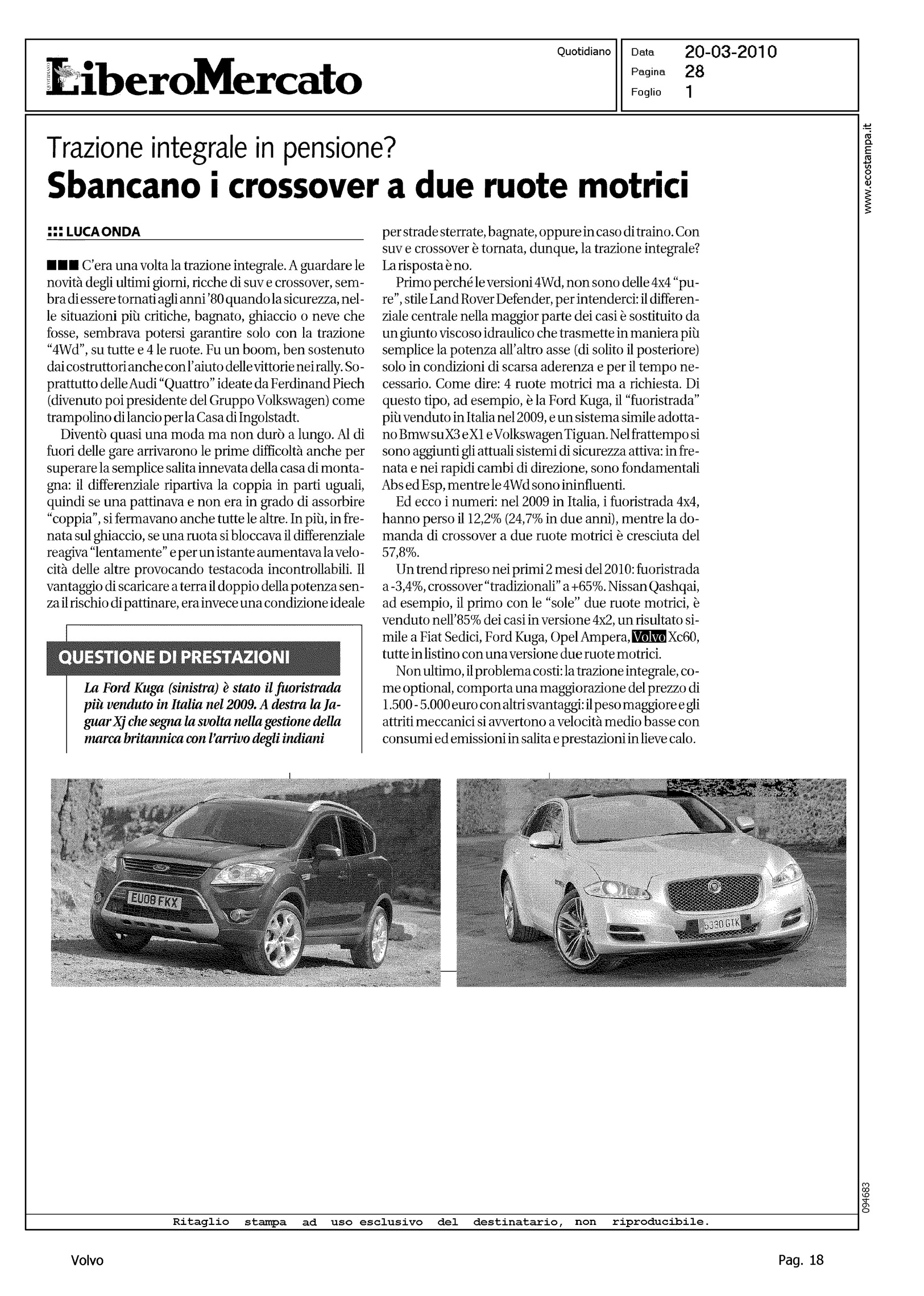 Author: ONDA, LUCALine: XC60 Model: Subject: - Title: SBANCANO I CROSSOVER A DUE RUOTE MOTRICIHighlight: CITAZIONE