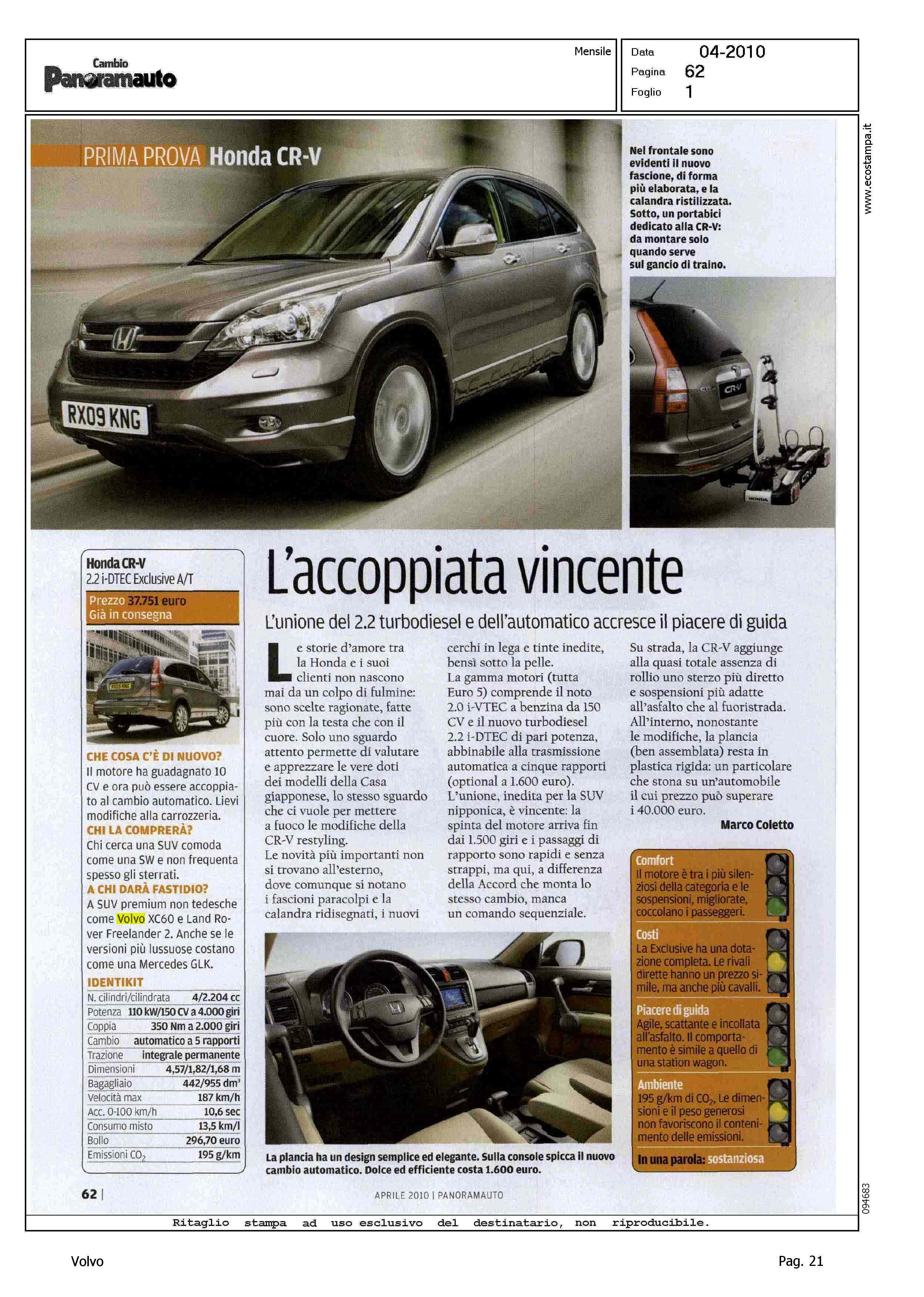 Highlight: XC60 CONCORRENTE PER HONDA CR-V 2.2 i-DTEC EXCLUSIVE A/T