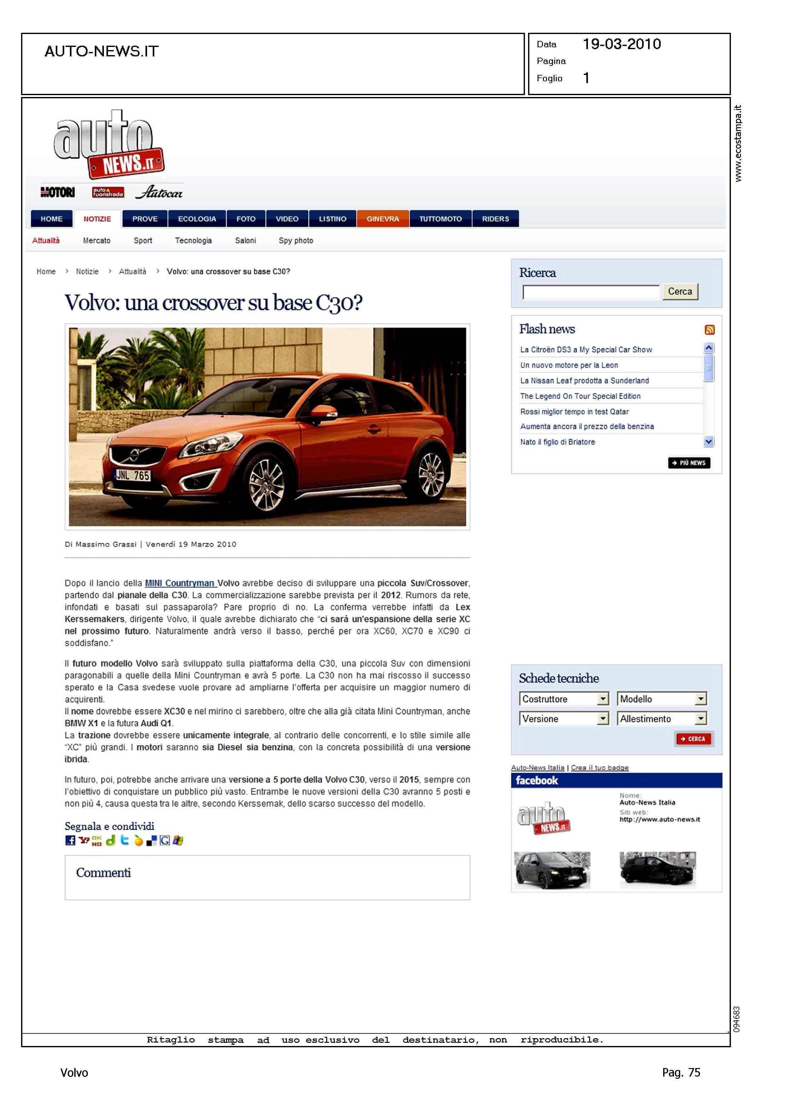 Author: Line: Corporate Model: Corporate Subject: - Title: VOLVO: UNA CROSSOVER SU BASE C30?Highlight: ANTICIPAZIONE SUV DI PICCOLE DIMENSIONI SU MECCANICA C30