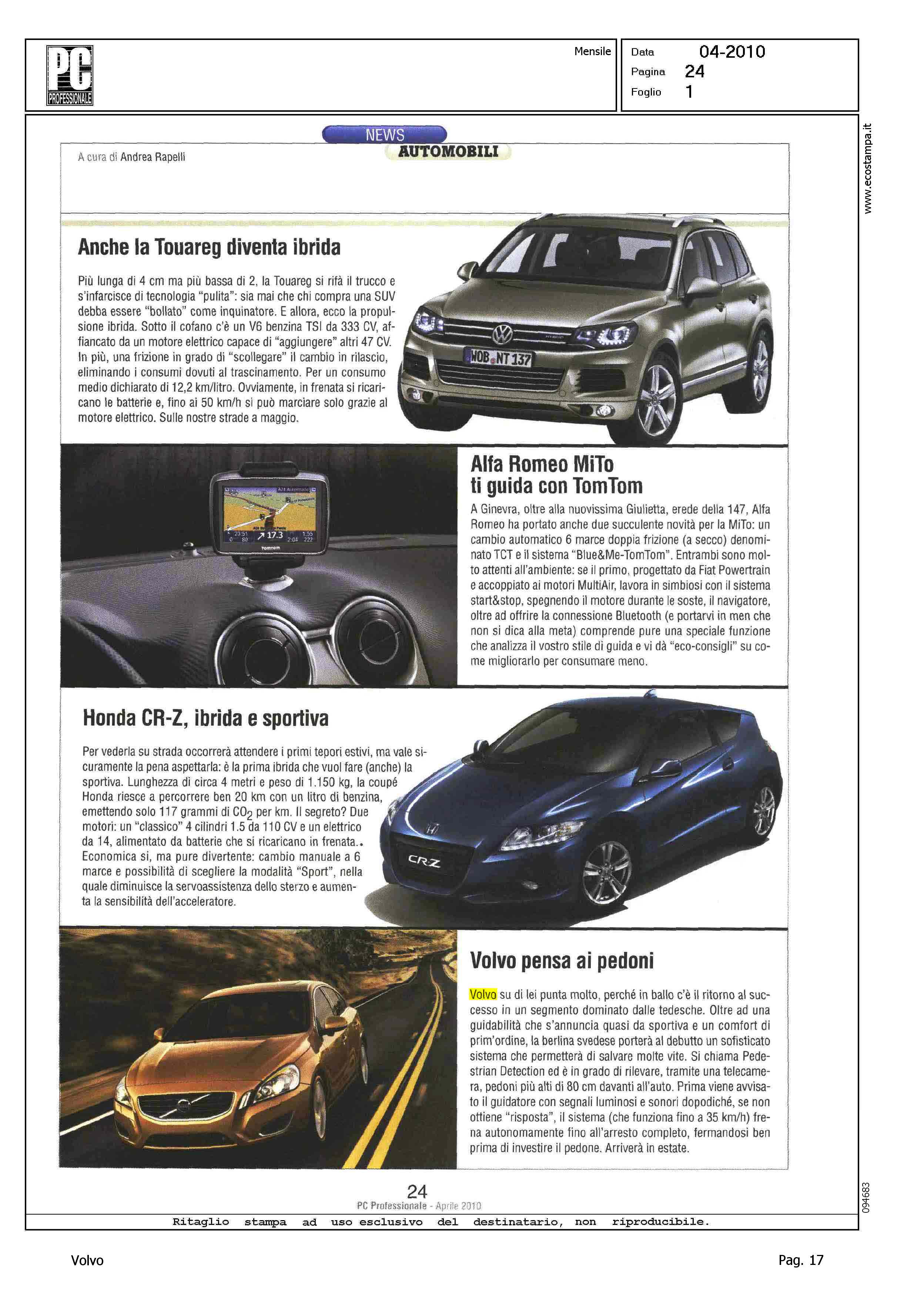 Author: RAPELLI, ANDREALine: S60 Model: Linea S60 Show Subject: - Title: VOLVO PENSA AI PEDONIHighlight: PROFILO MISSIONE - PEDESTRIAN DETECTION - DATA LANCIO SUL MERCATO