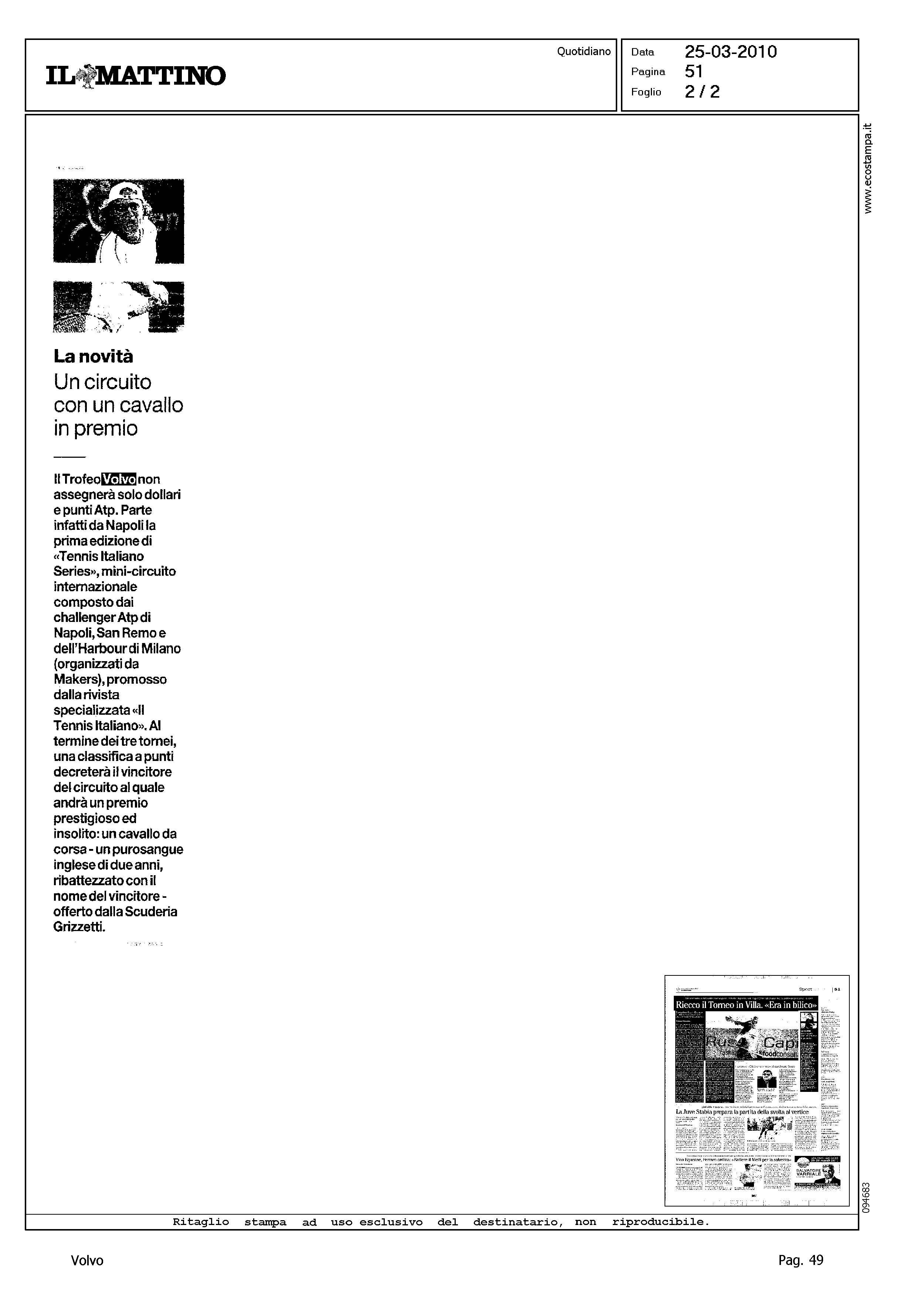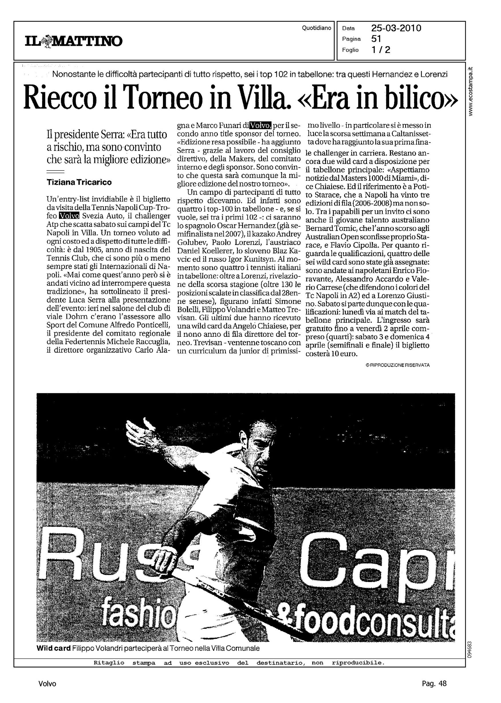 Author: TRICARICO, TIZIANALine: Corporate Model: Corporate Subject: - Title: RIECCO IL TORNEO IN VILLA...Highlight: TENNIS NAPOLI CLUB-TROFEO VOLVO SVEZIA AUTO
