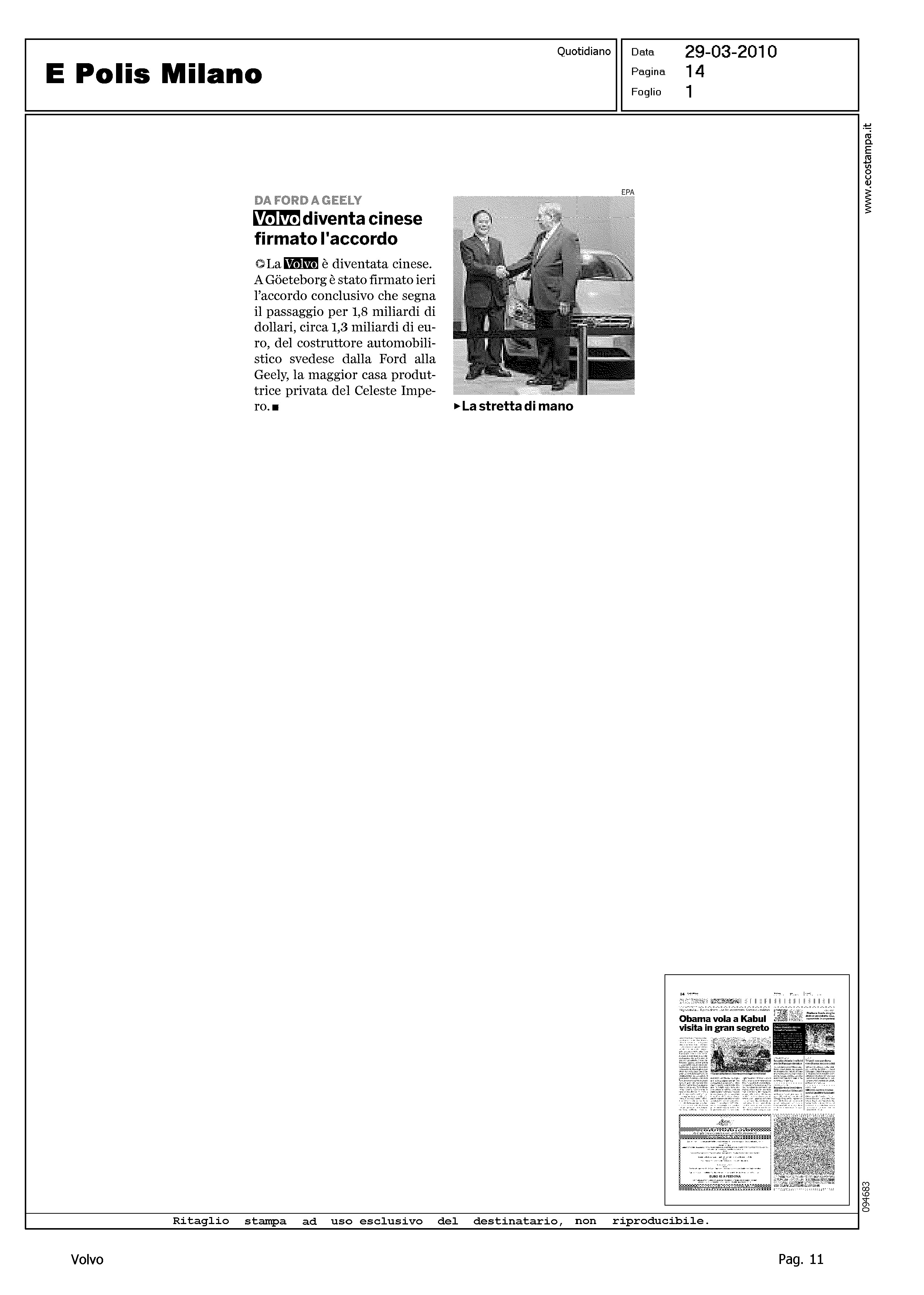 Author: Line: Corporate Model: Corporate Subject: - Title: DA FORD A GEELY - VOLVO DIVENTA CINESE FIRMATO L'ACCORDOHighlight: ANNUNCIO VENDITA VOLVO A GEELY