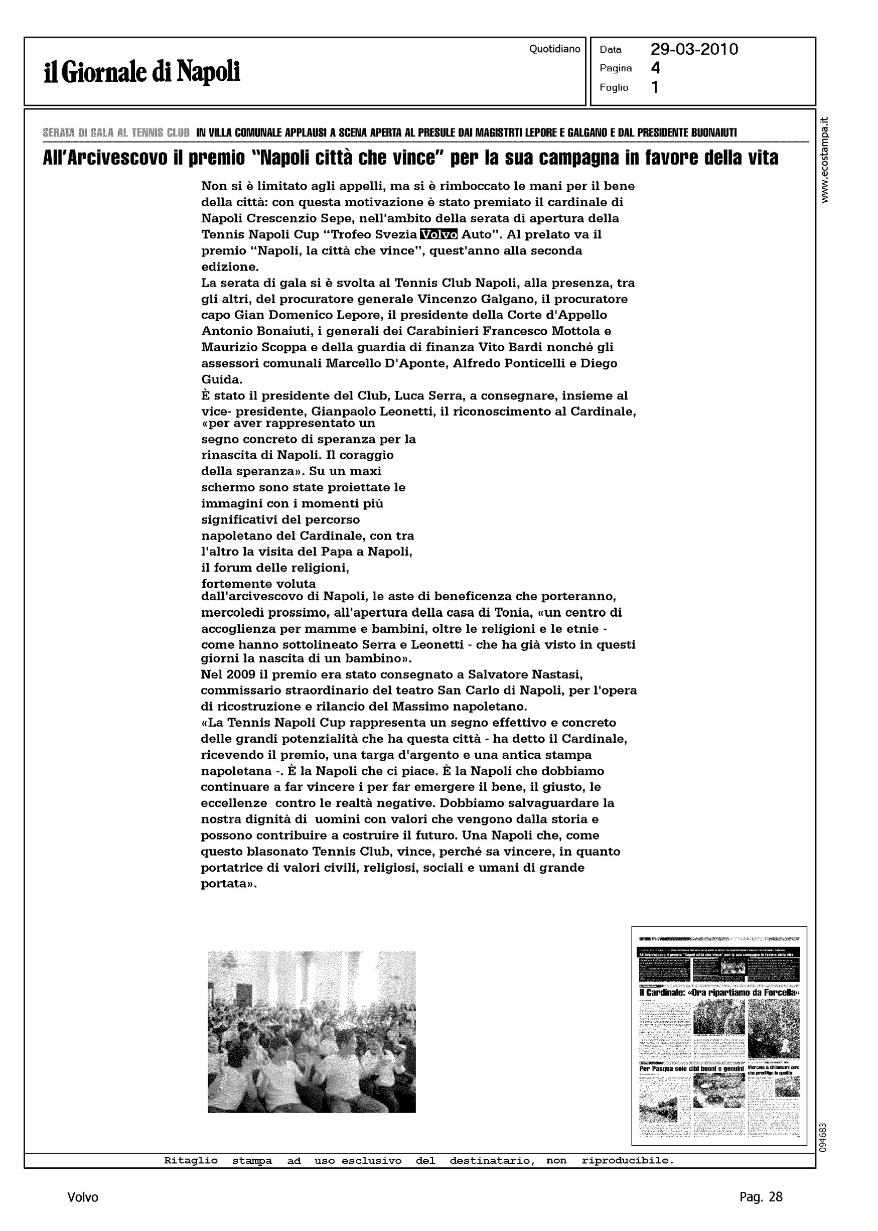 Author: Line: Corporate Model: Corporate Subject: - Title: TENNIS NAPOLI CLUB...Highlight: INTERVENTO DEL VESCOVO DI NAPOLI AL TENNIS NAPOLI CLUB