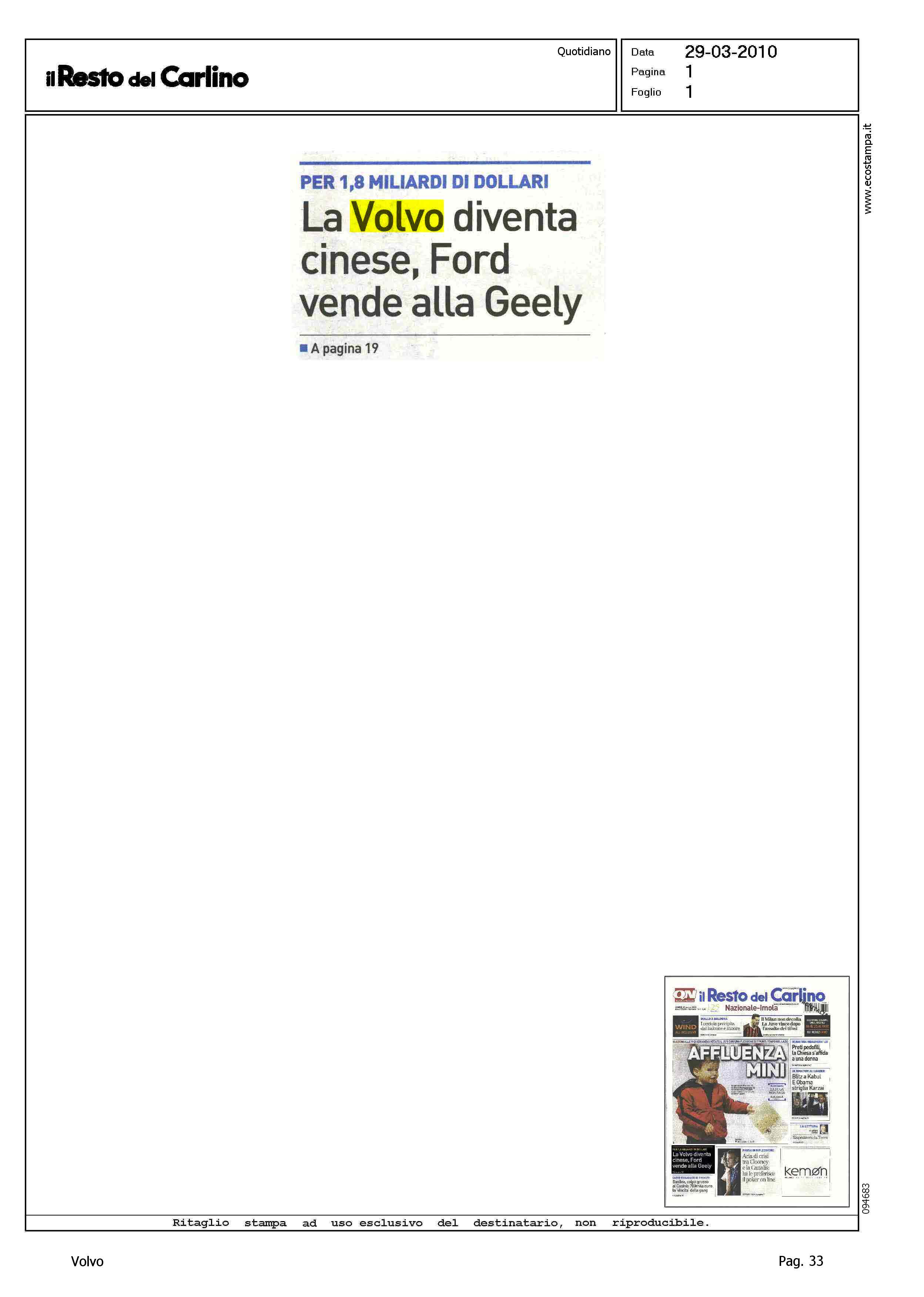 Title: PER 1,8 MILIARDI DI DOLLARI - LA VOLVO DIVENTA CINESE, FORD VENDE ALLA GEELY