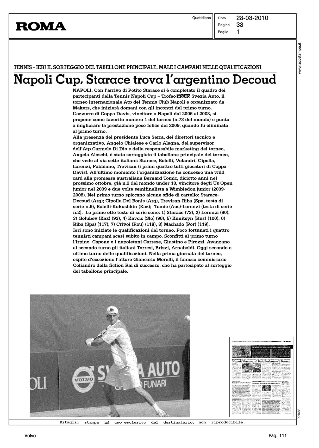 Author: Line: Corporate Model: Corporate Subject: - Title: NAPOLI CUP, STARACE TROVA L'ARGENTINO DECOUDHighlight: TROFEO SVEZIA AUTO