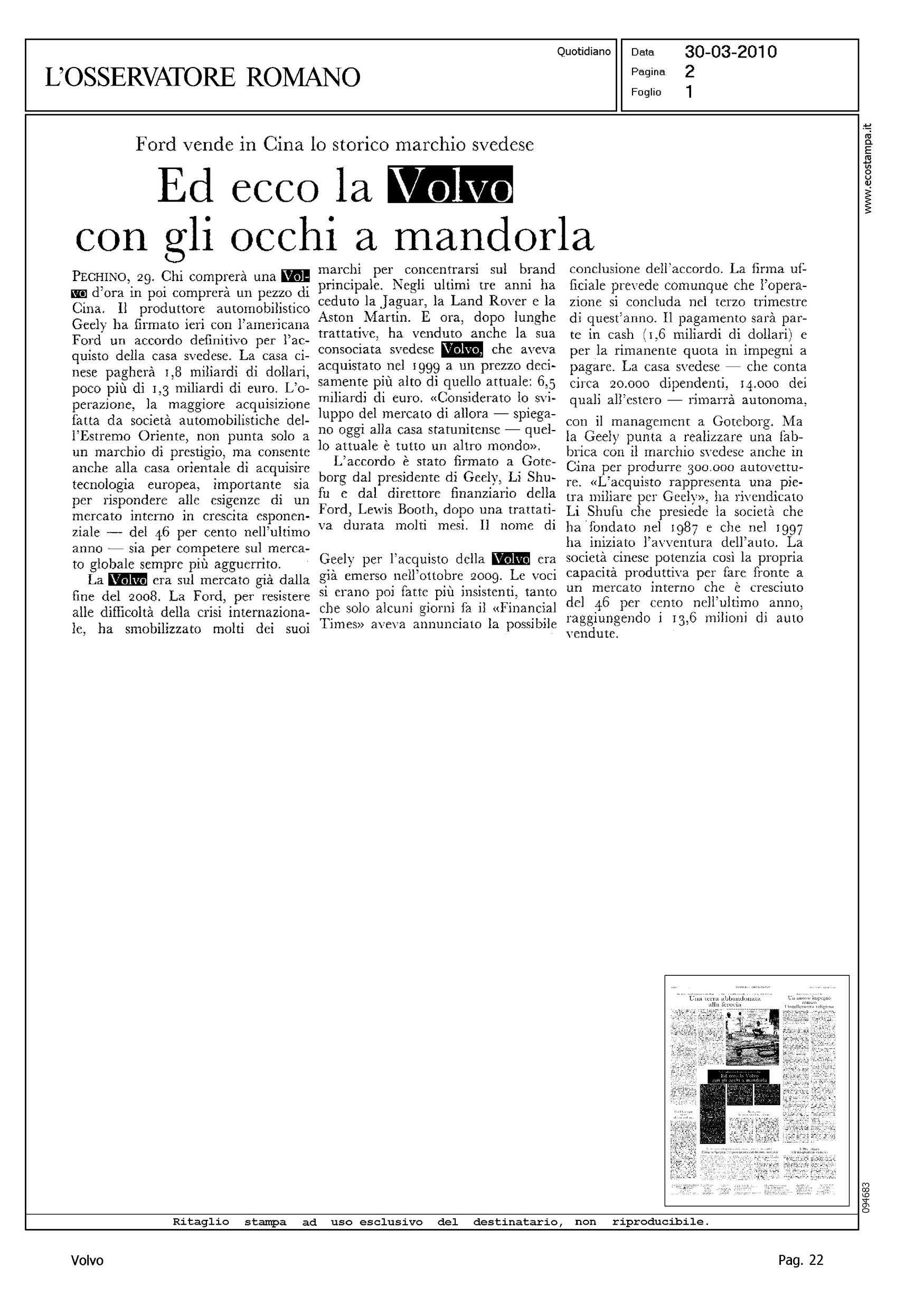 Author: Line: Corporate Model: Corporate Subject: - Title: ED ECCO LA VOLVO CON GLI OCCHI A MANDORLAHighlight: VENDITA VOLVO A GEELY