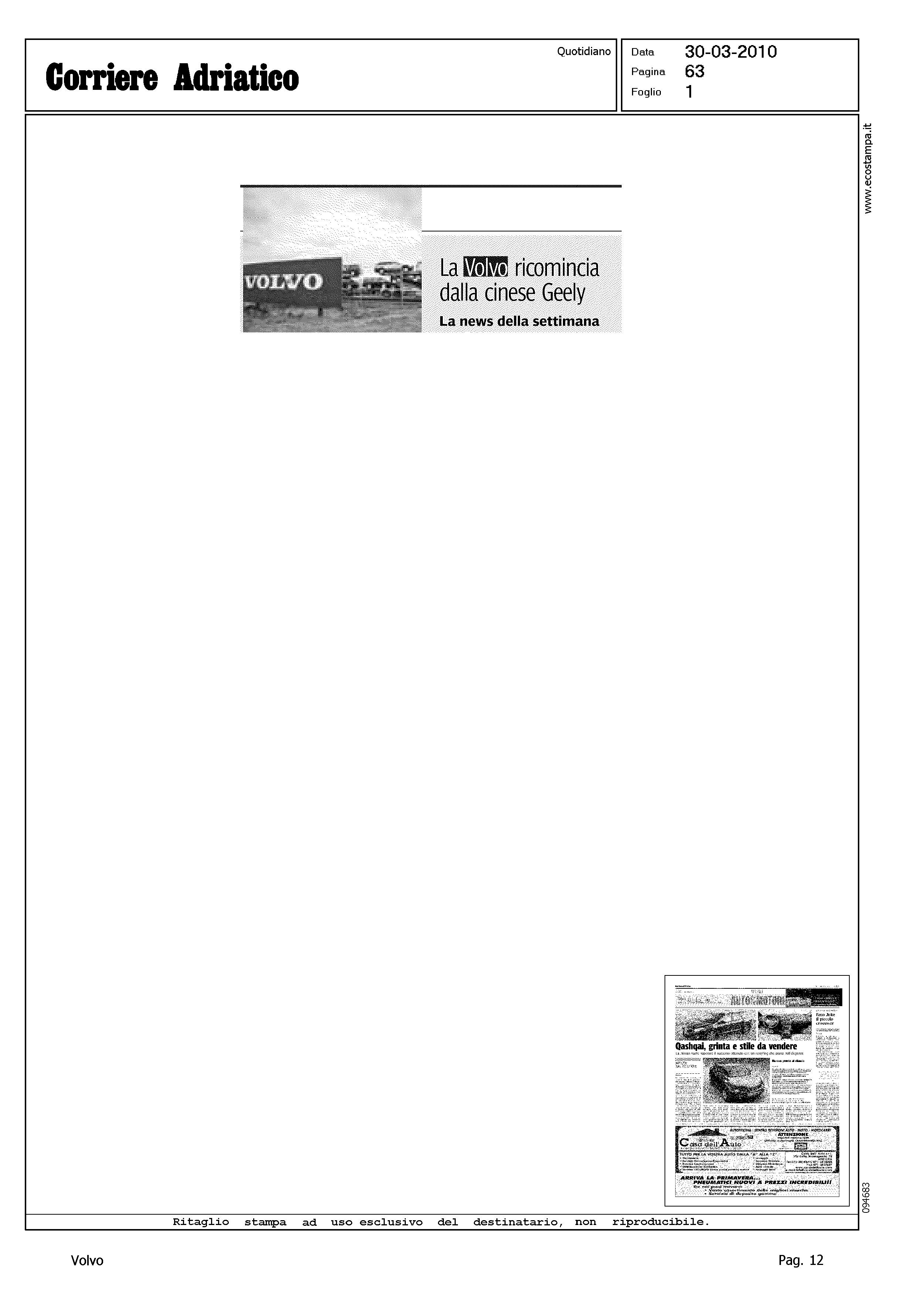 Author: Line: Corporate Model: Corporate Subject: - Title: LA VOLVO RICOMINCIA DALLA CINESE GEELYHighlight: VENDITA VOLVO A GEELY