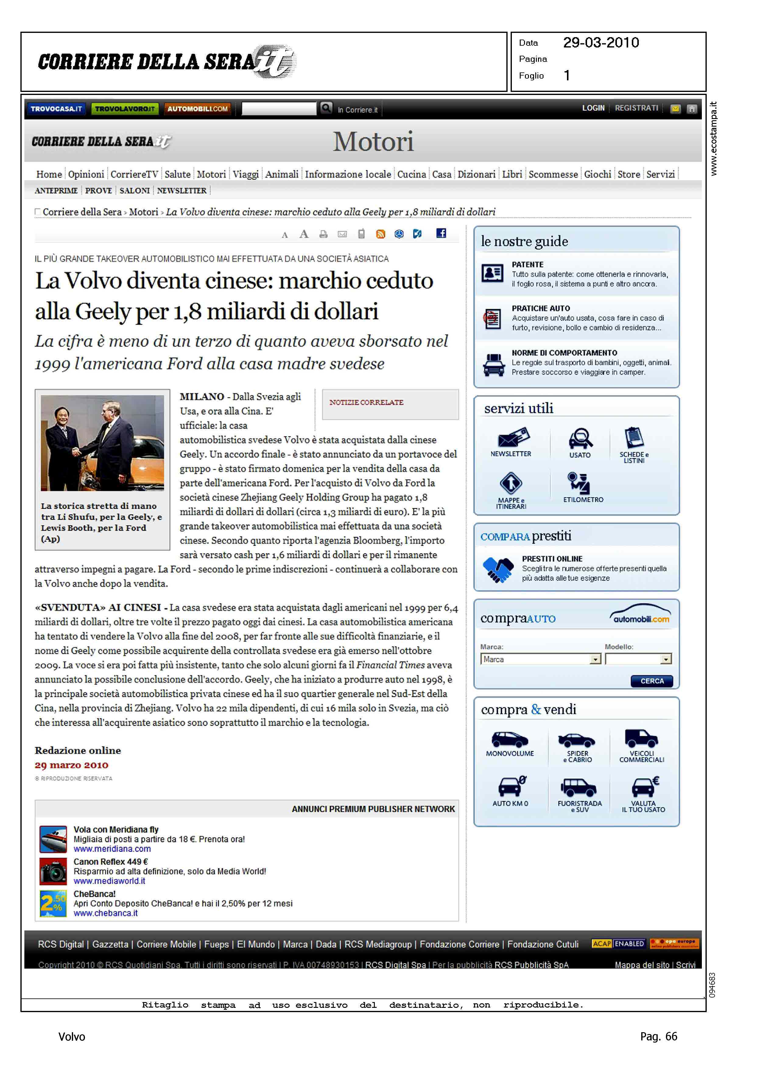 Title: LA VOLVO DIVENTA CINESE: MARCHIO CEDUTO ALLA GEELY PER 1,8 MILIARDI DI DOLLARI