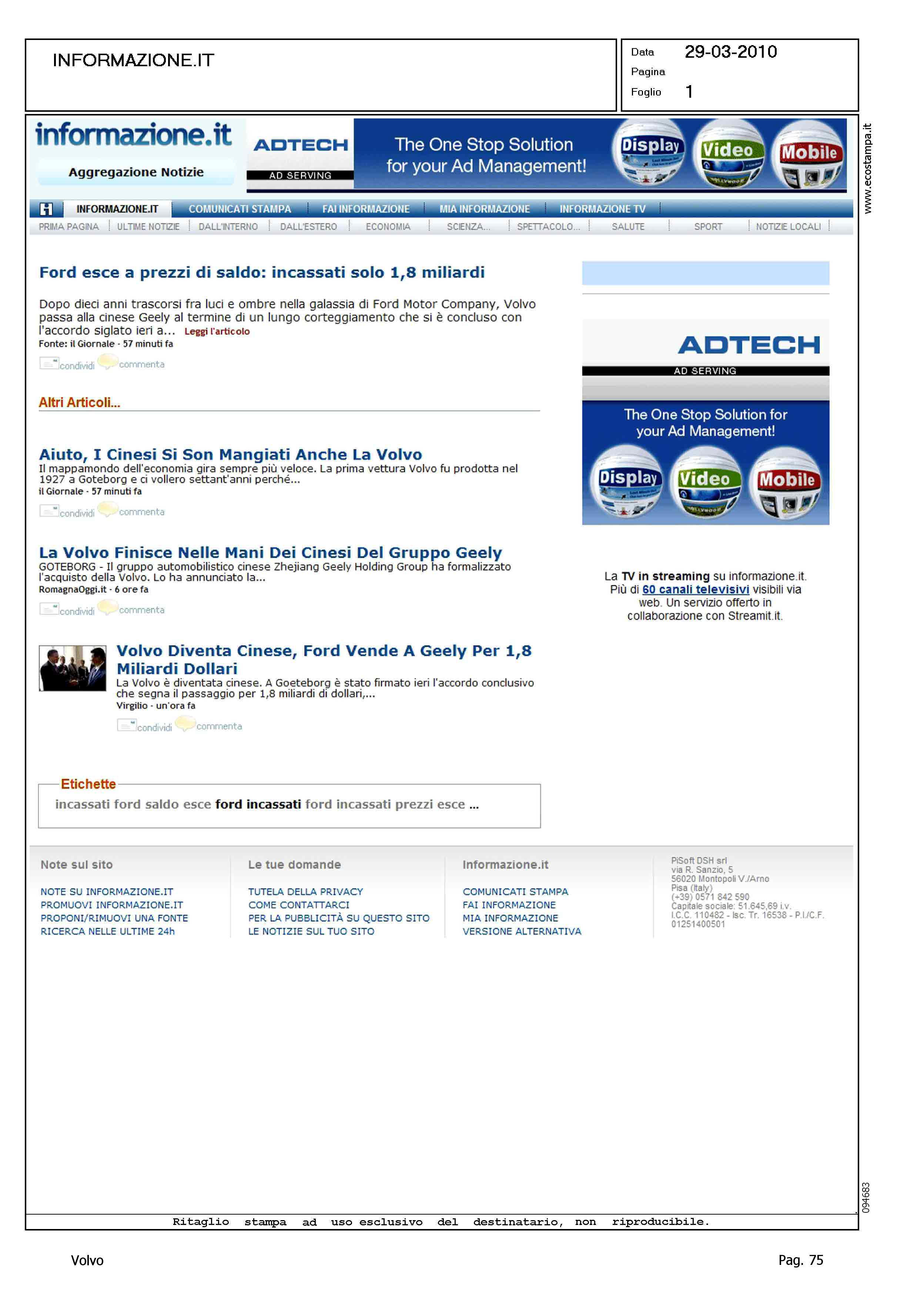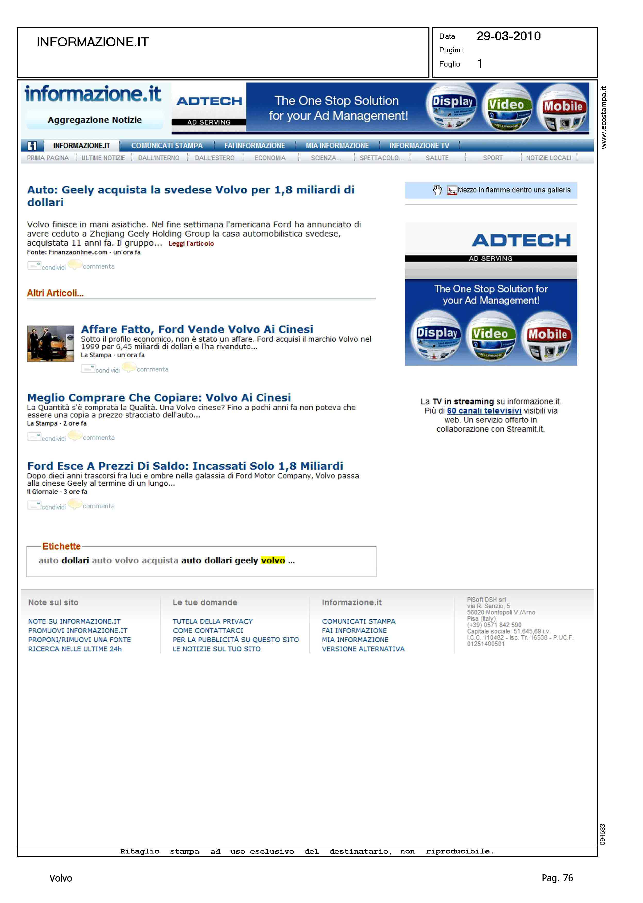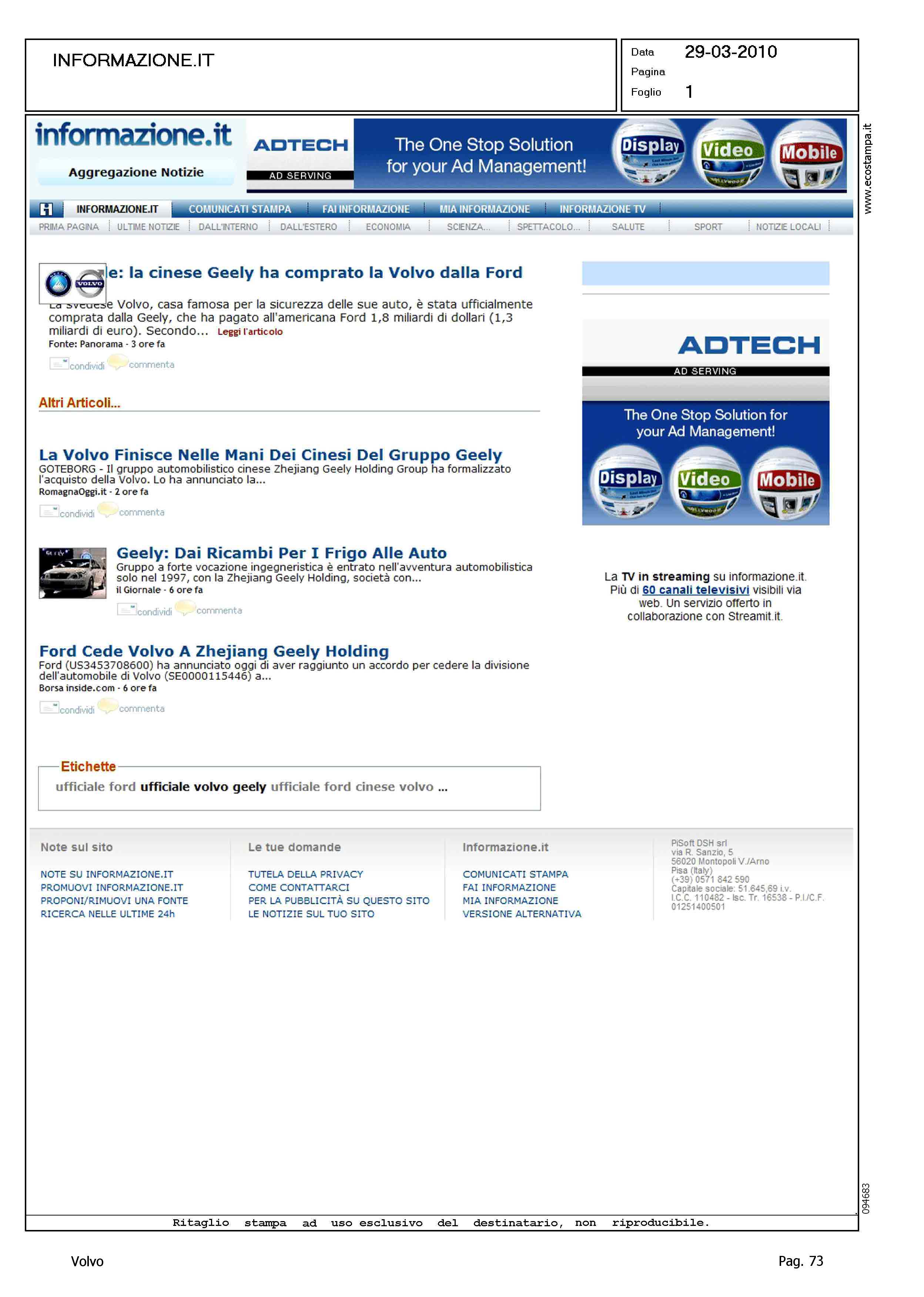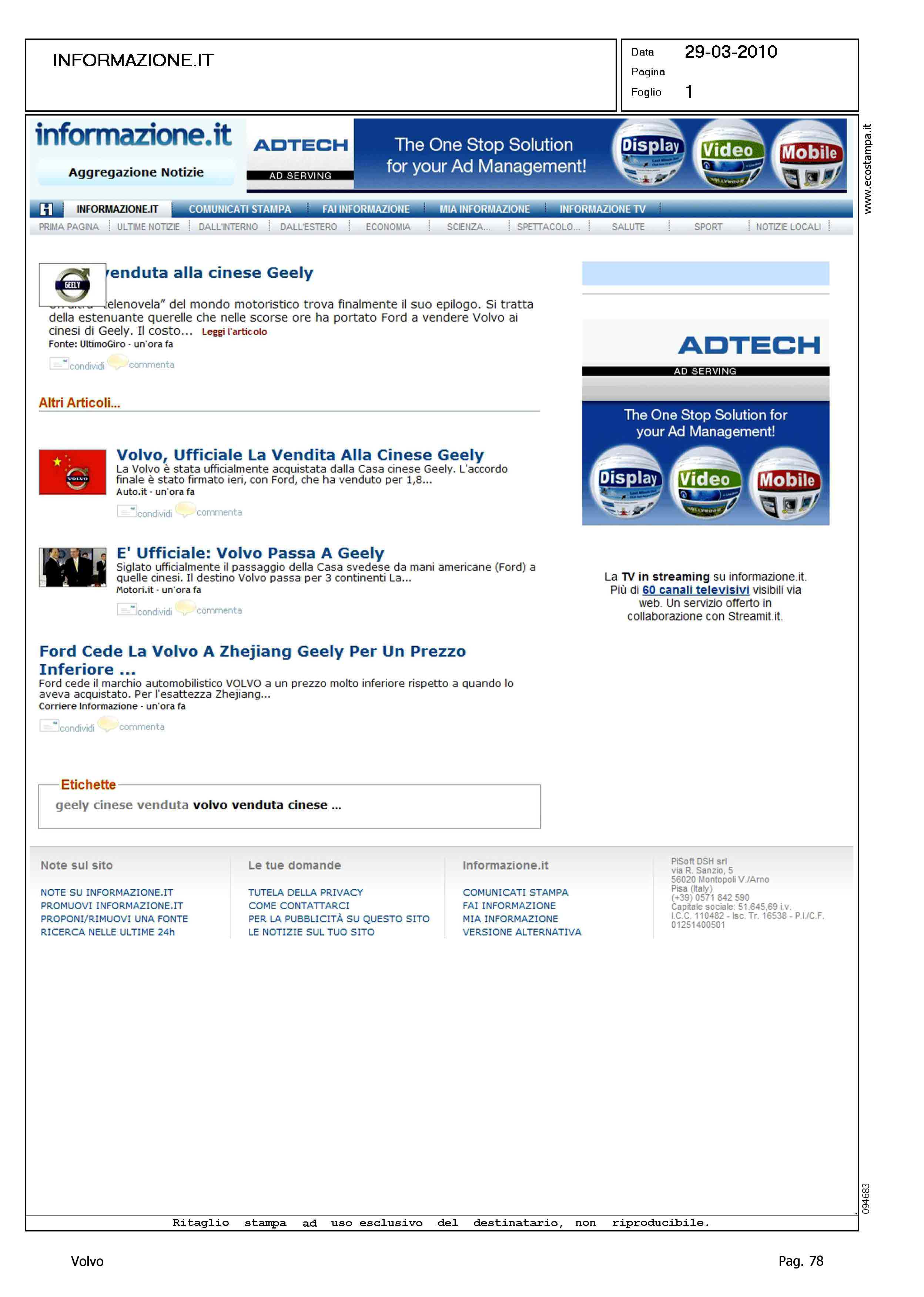 Author: Line: Corporate Model: Corporate Subject: - Title: VOLVO GEELY - TITOLI VARIHighlight: VENDITA VOLVO A GEELY
