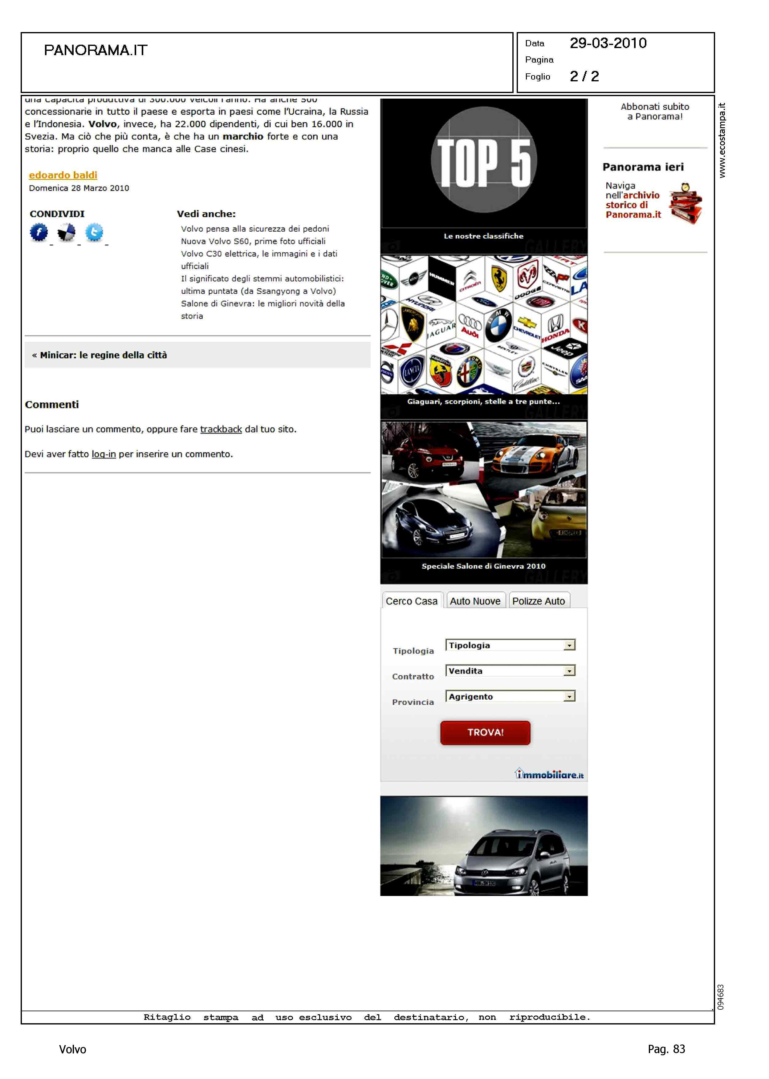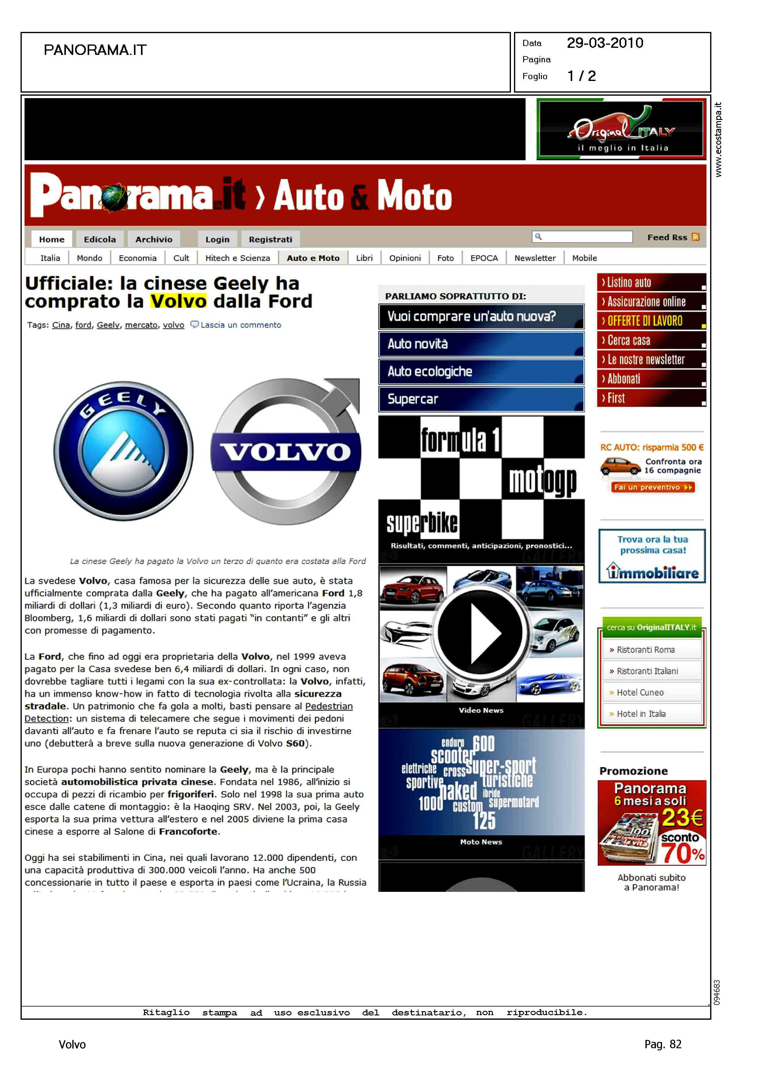 Author: BALDI, EDOARDOLine: Corporate Model: Corporate Subject: - Title: UFFICIALE: LA CINESE GEELY HA COMPRATO LA VOLVO DALLA FORDHighlight: VENDITA VOLVO A GEELY