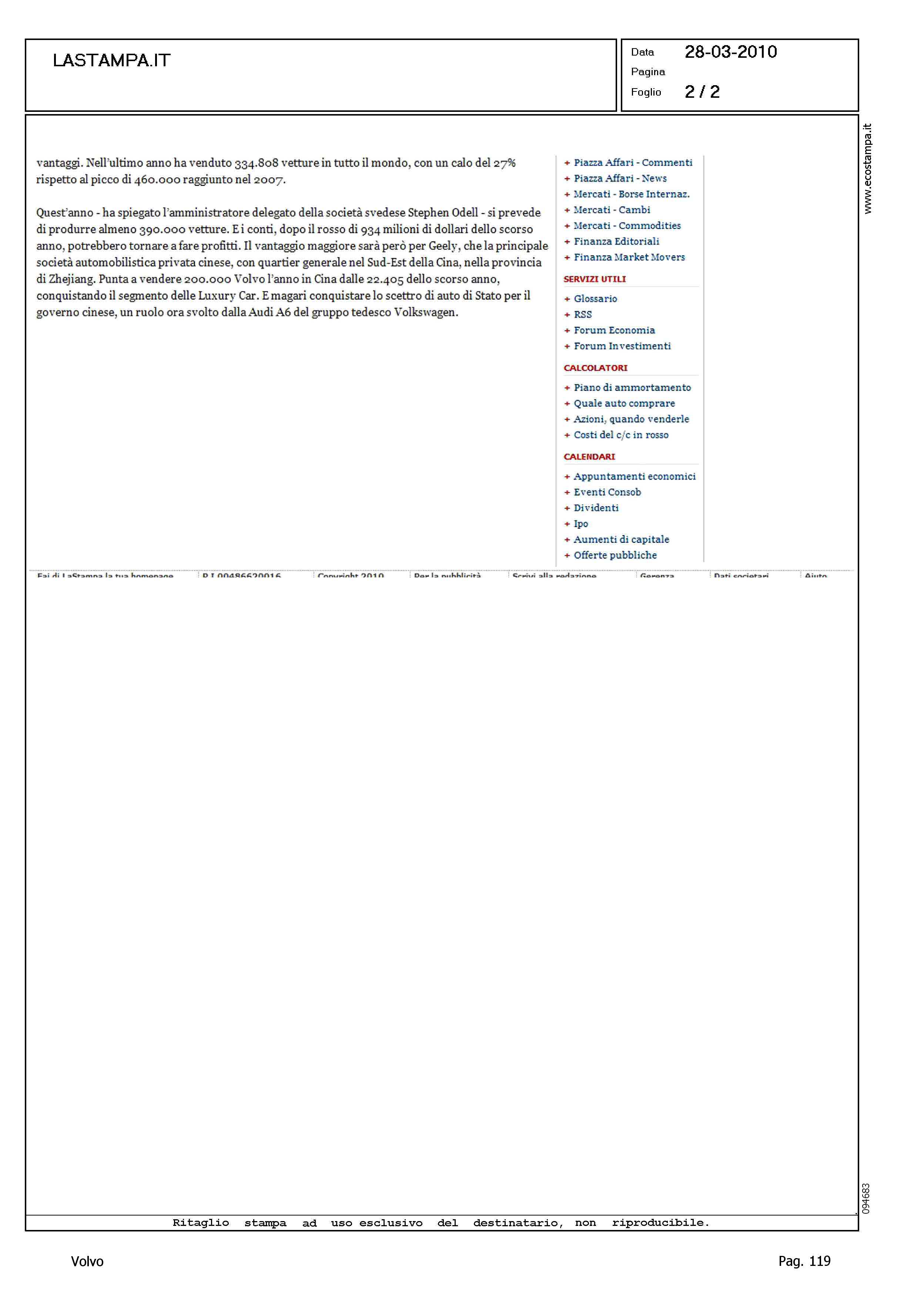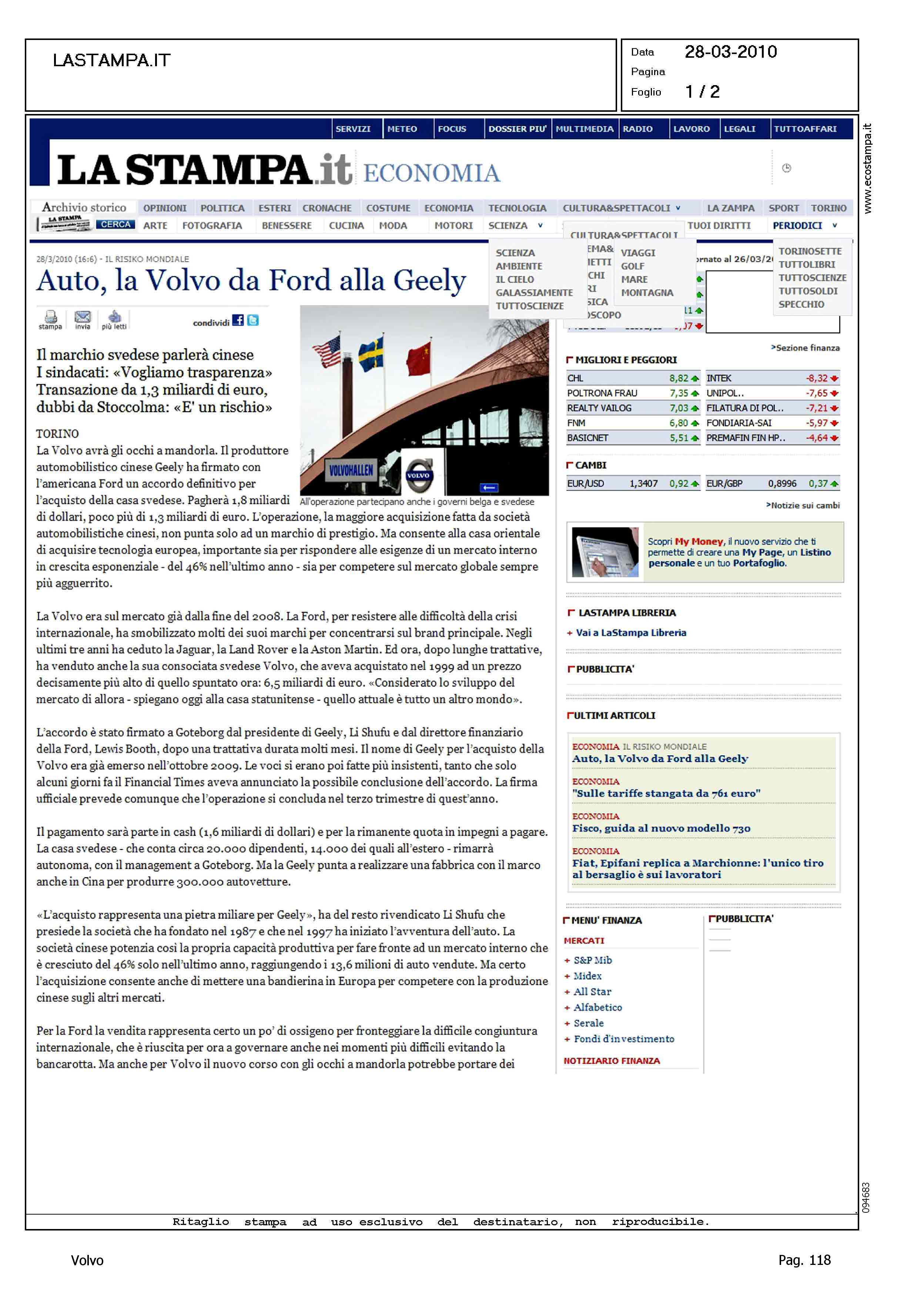 Author: Line: Corporate Model: Corporate Subject: - Title: AUTO, LA VOLVO DA FORD ALLA GEELYHighlight: VENDITA VOLVO A GEELY
