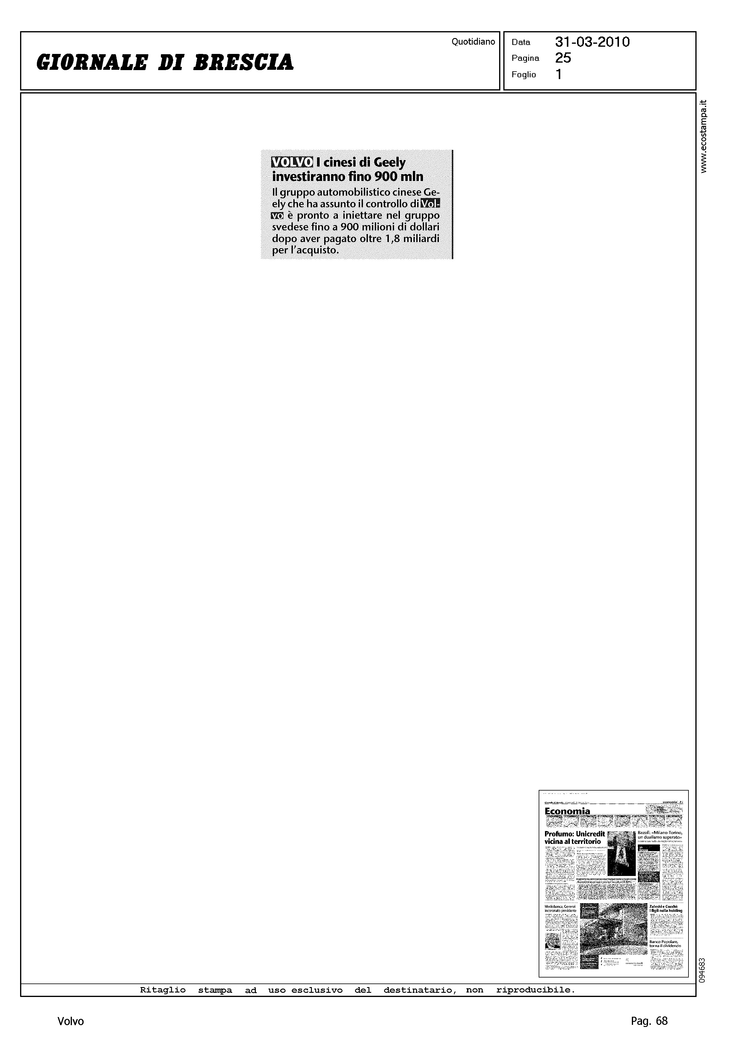Author: Line: Corporate Model: Corporate Subject: - Title: VOLVO - I CINESI DI GEELY INVESTIRANNO FINO A 900 MLNHighlight: VENDITA VOLVO A GEELY