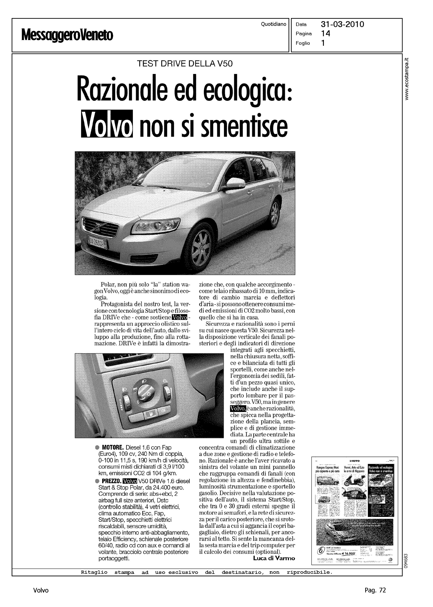 Title: RAZIONALE ED ECOLOGICA: VOLVO NON SI SMENTISCE